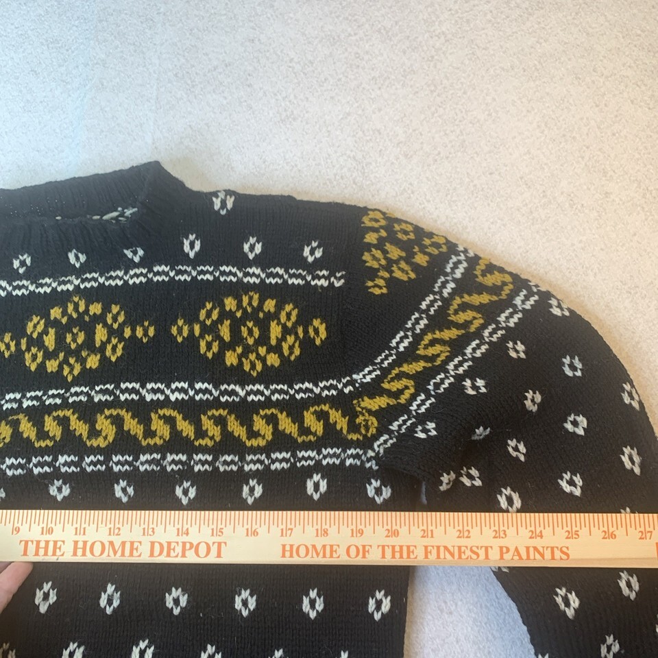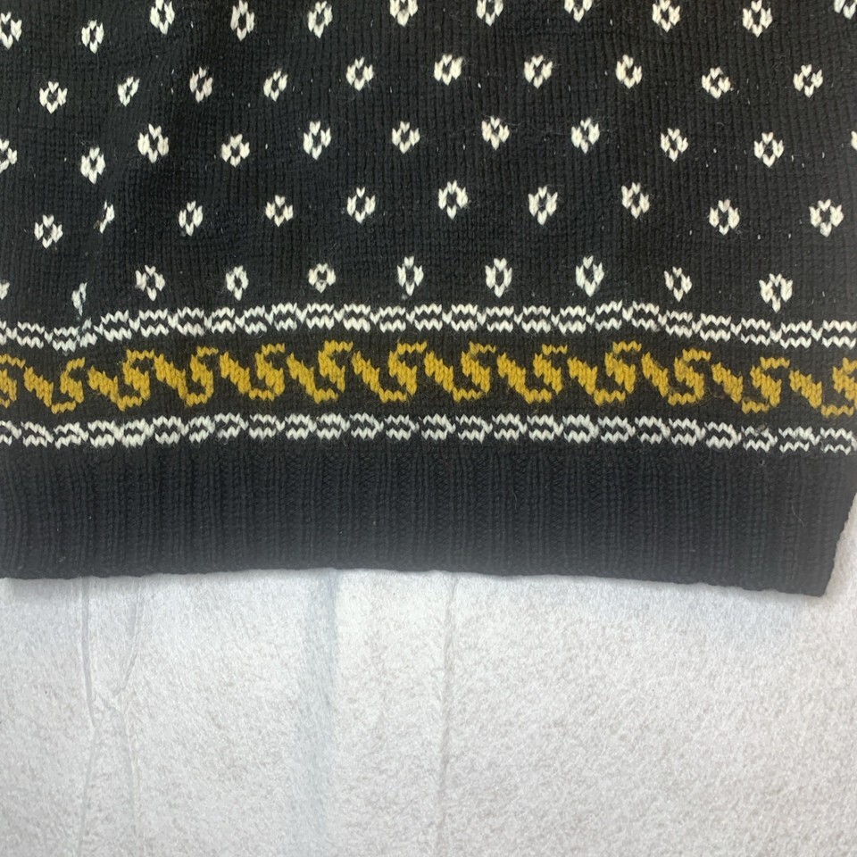 Vintage Wool Nordic Sweater Black Yellow White Fair Isle Hand Knit 60s-80s M/L