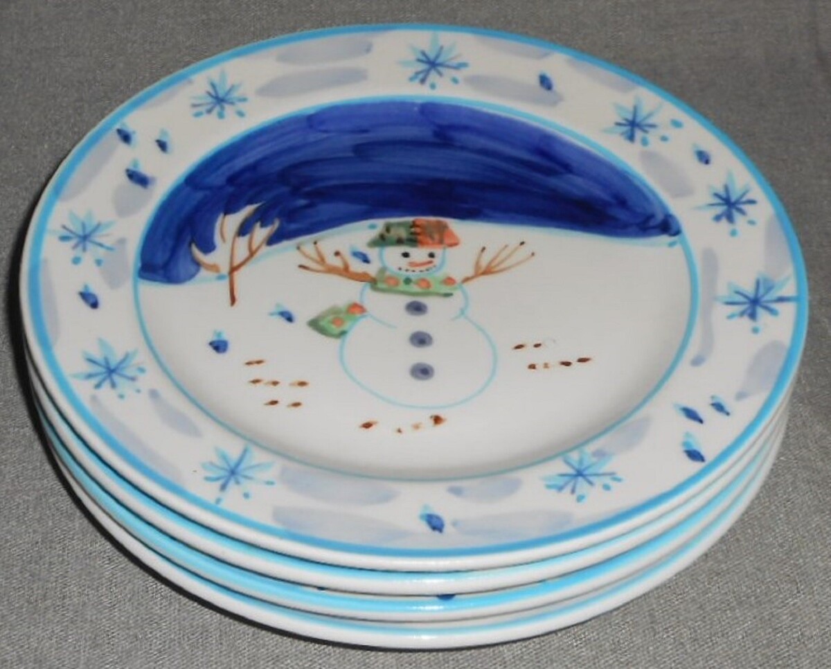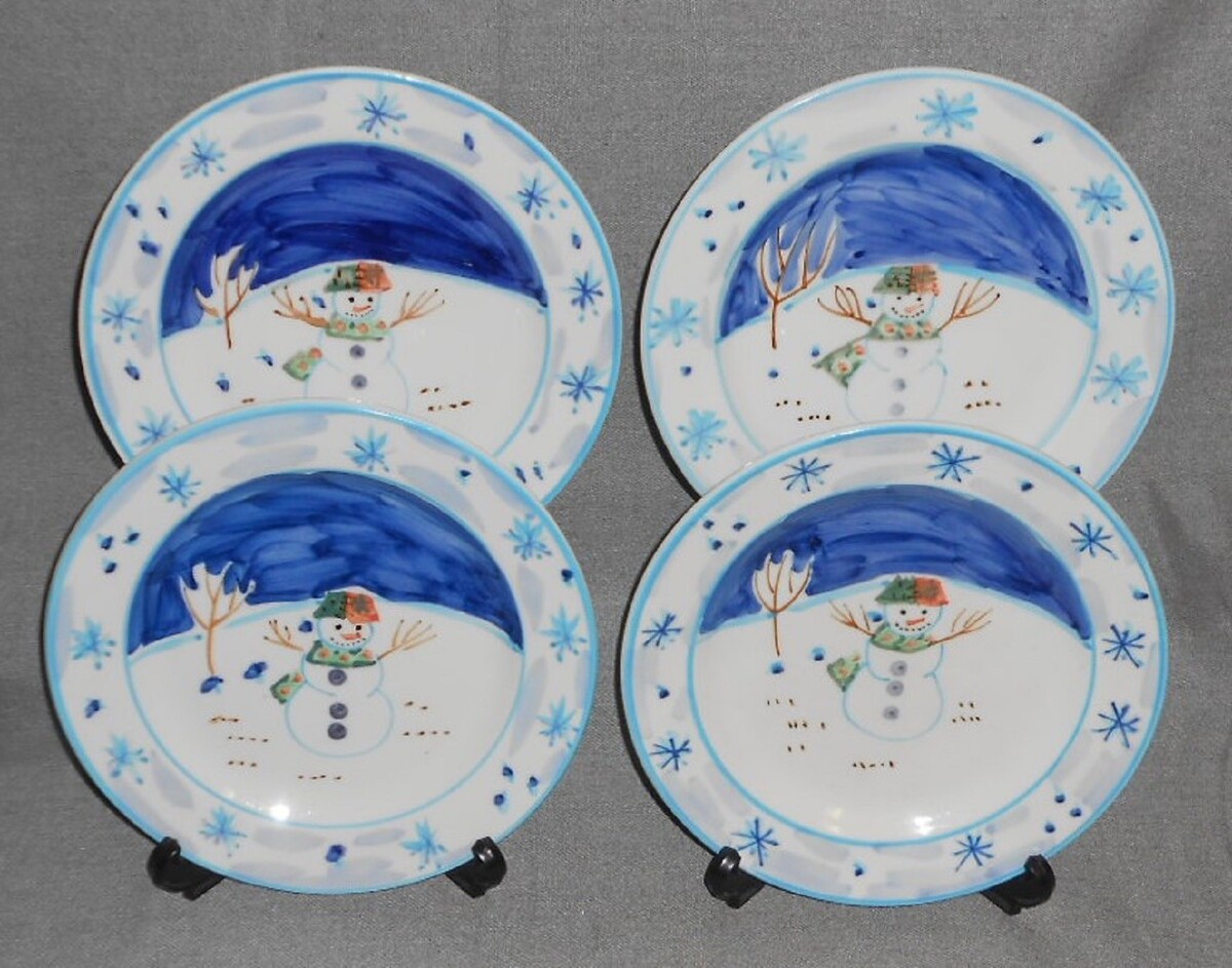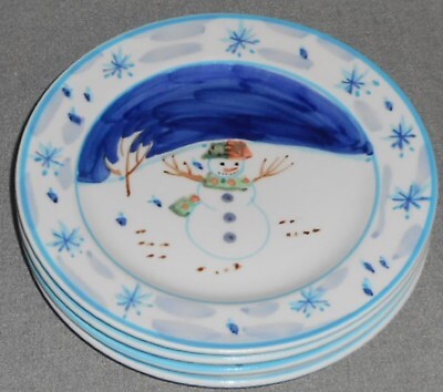 Set (4) Montgomery Ward SNOWMAN PATTERN Salad Plates HOLIDAY - CHRISTMAS