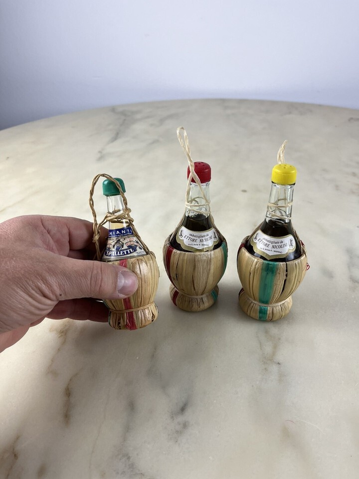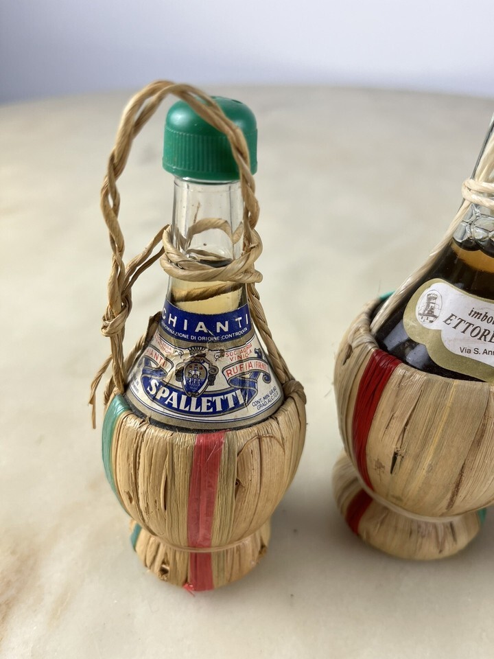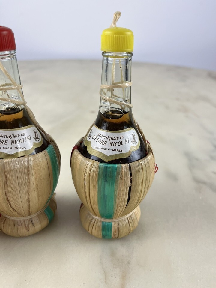 Tre fiaschette mignon di vino, anni ?70.