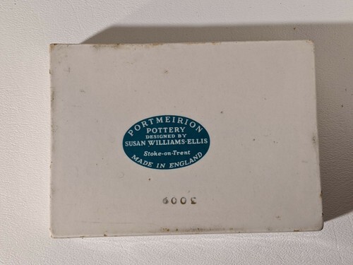 A la venta hay un plato baratija con pasador de jabon Portmeirion de Londres, Inglaterra, del The Universities Toilet Club usado. Sin grietas ni roturas. Sera necesario limpiar el plato. Algunos trozos de pulga alrededor del borde