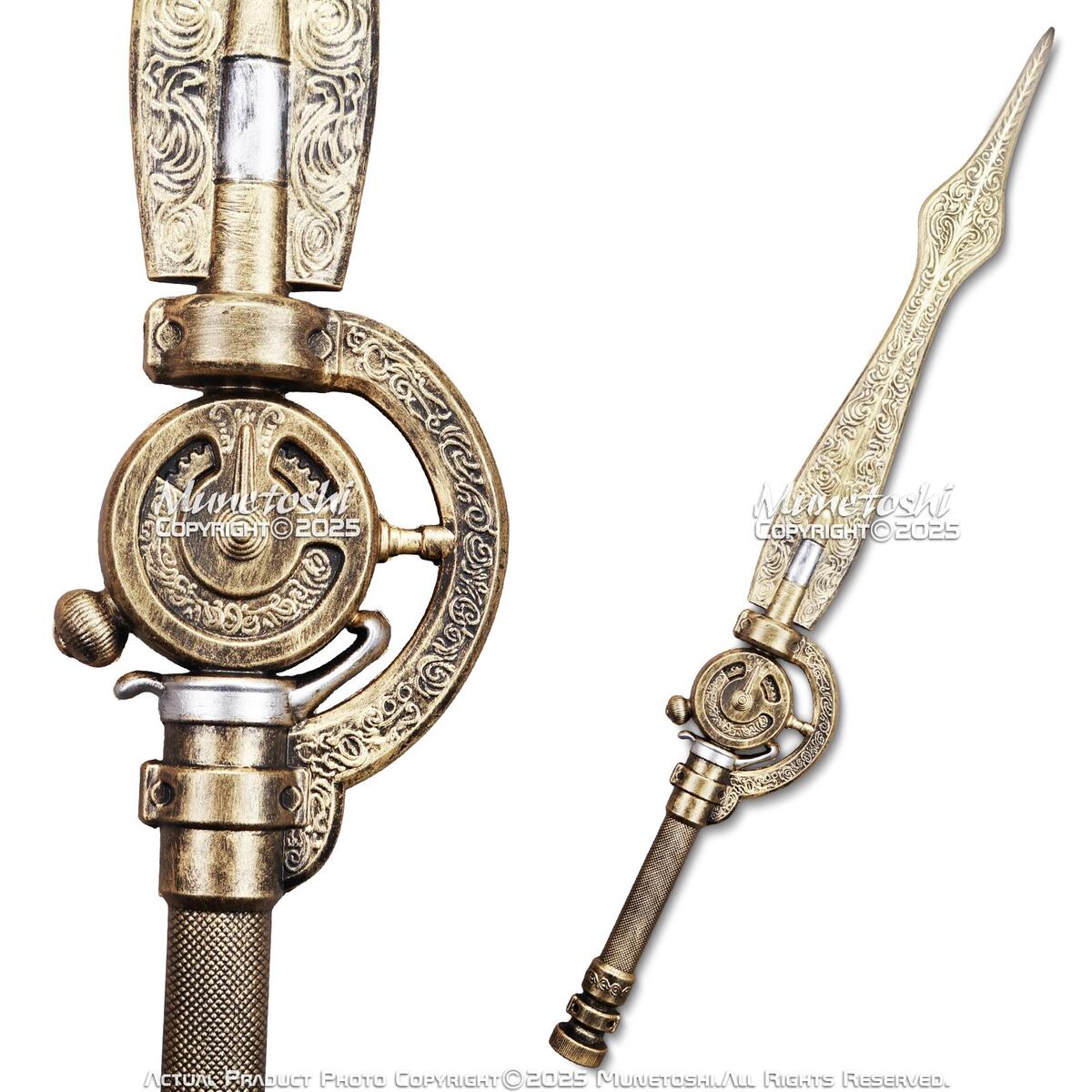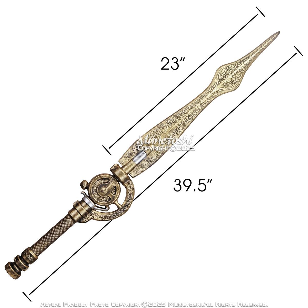 [Design] Featuring a long, ornate foam blade shaped like a clock hand, the engravings and detailing make for a striking, ceremonial look.