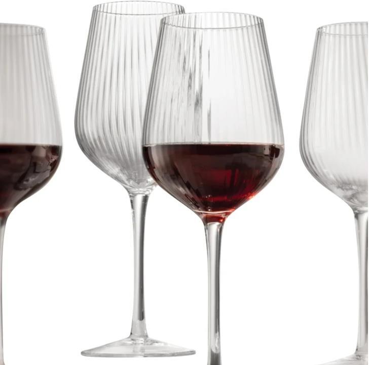 Finely crafted glassware featuring a unique optic with a modern design, artfully capturing and reflecting light. An ideal addition to enhance the sophistication of your table. A perfect shape to bring out the flavor of your favorite white or red wine.