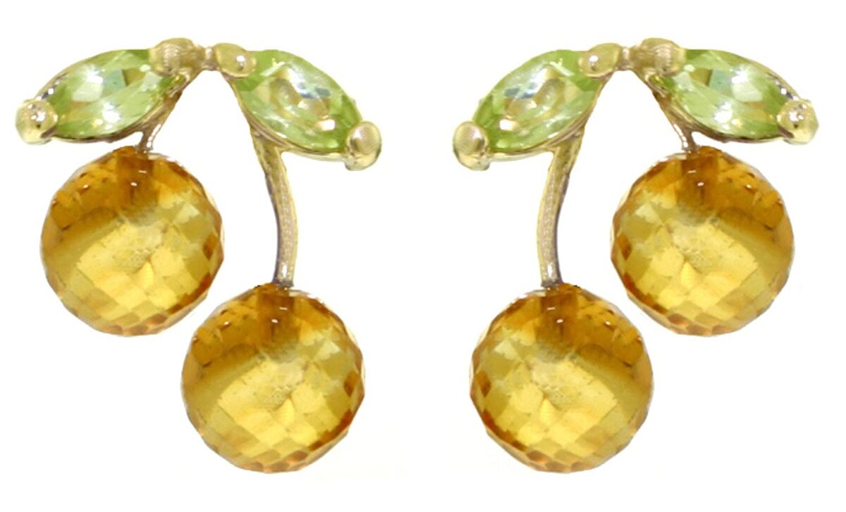 14k White Gold Stud Earrings with Natural Peridots and Citrines