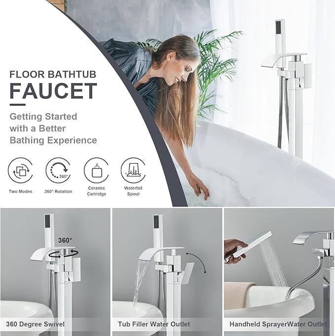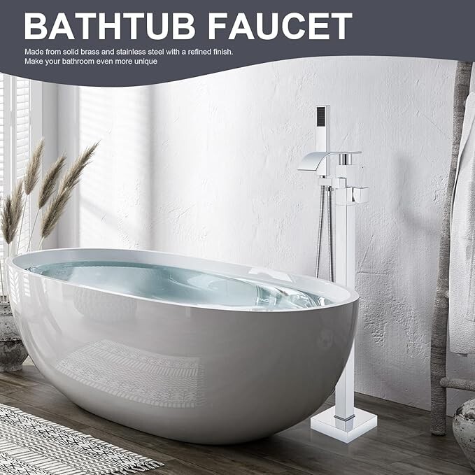 Senlesen Bathroom Chrome Freestanding Tub Faucet Floor Mounted Bathtub Shower Fa