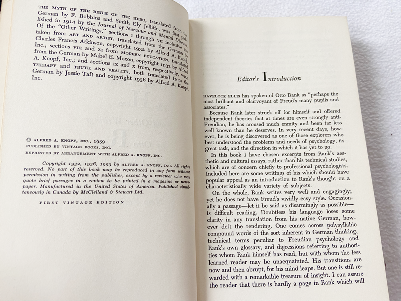 (First Vintage Edition) 1959 MMPB The Myth of the Birth of the Hero, and Other Writings. by Otto Rank(1959-06-01)