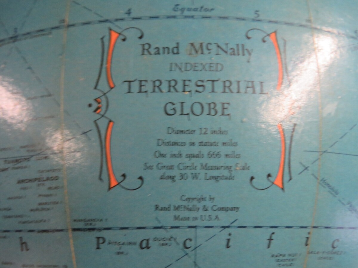 Vintage Rand McNally Indexed Terrestrial Globe 12"