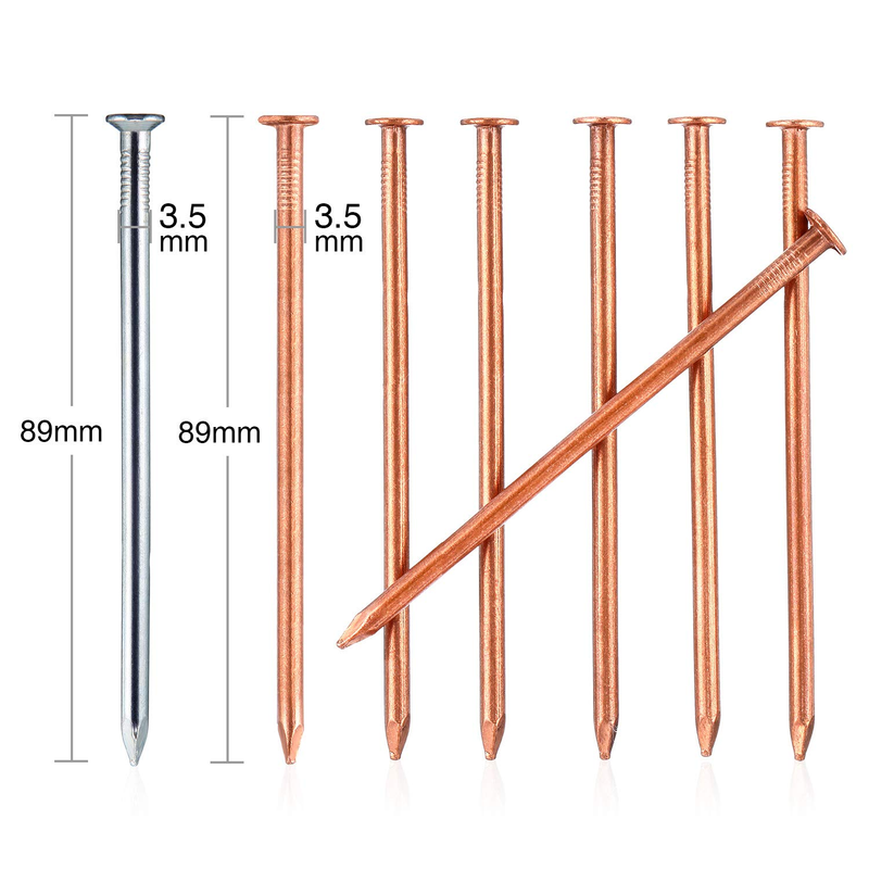Package includes: 20 x solid long copper nails (3.5 inch/ 89 mm), and 2 x long steel nails (3.5 inch/ 89 mm)