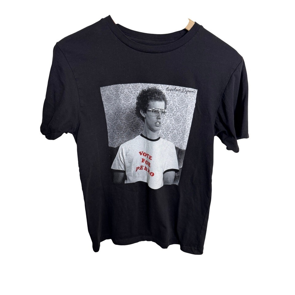Keywords: Napoleon Dynamite, Vote for Pedro, Graphic T-Shirt, Movie Tee, 20th Century Studios, Cult Classic, Black T-Shirt, Small, S, Men's T-Shirt, Retro Tee, Funny T-Shirt, Movie Merchandise, Fan Apparel
