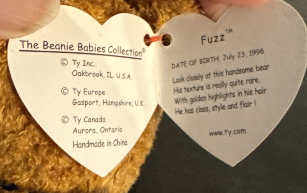 This product is a Ty 1998 Original Beanie Babies Fuzz Bear plush toy, measuring 8 inches in length. It comes in a collector's case, making it a sought-after item for collectors of vintage Beanie Babies. This bear plush toy is a classic piece from the original Beanie Babies line released by Ty in 1998, perfect for fans of nostalgic toys and bear-themed collectibles.
