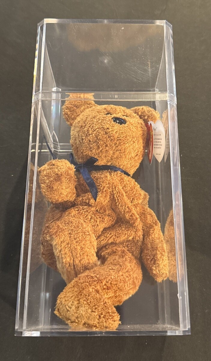 Ty 1998 Orig Beanie Babies Fuzz Bear Stuffed Plush Toy 8" In Collector's Case