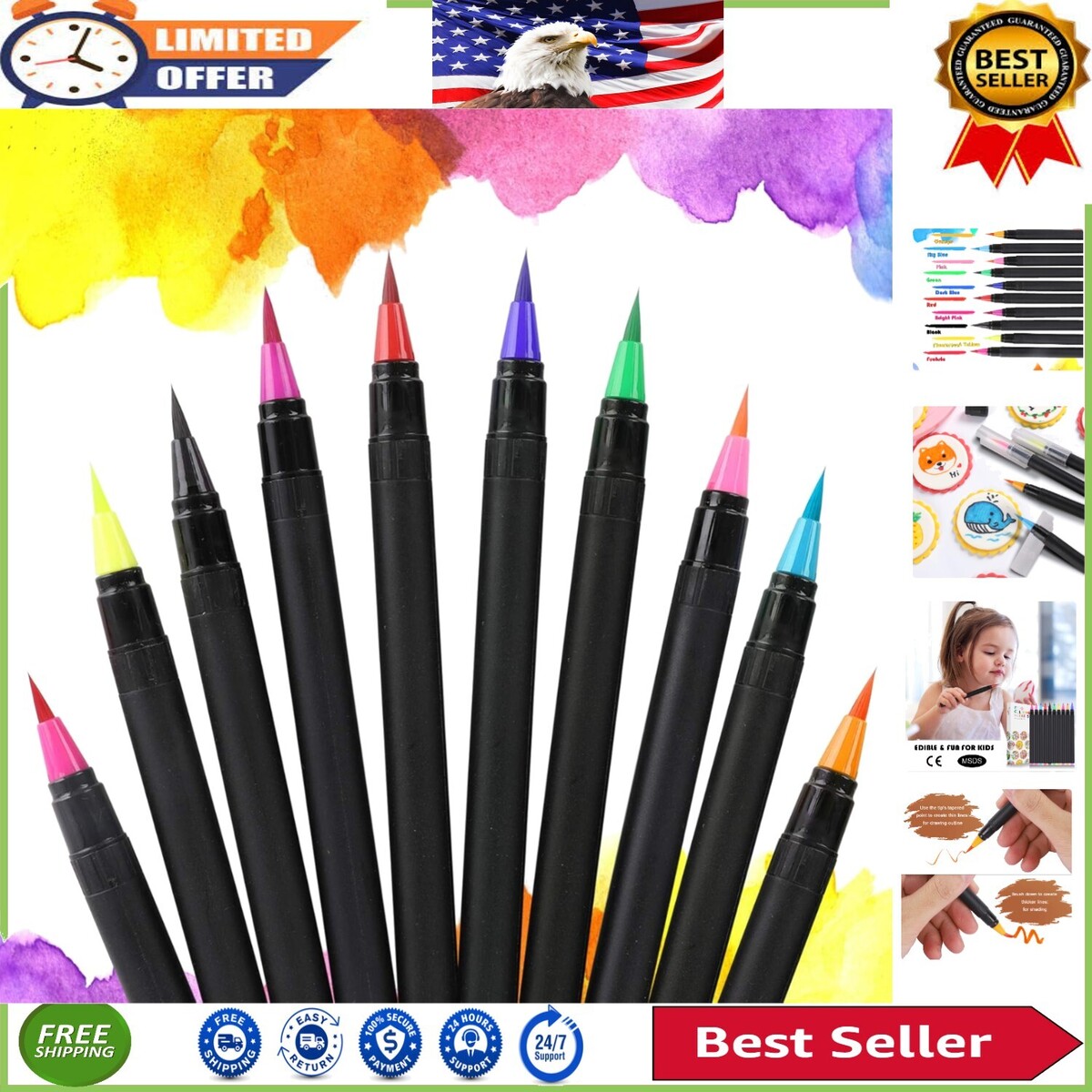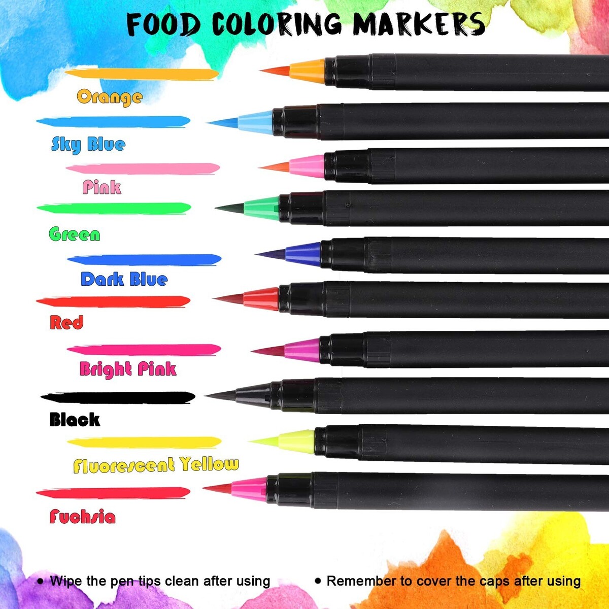Flexible Brush Tip Edible Markers - 10 Colors for Creative Food Decoration