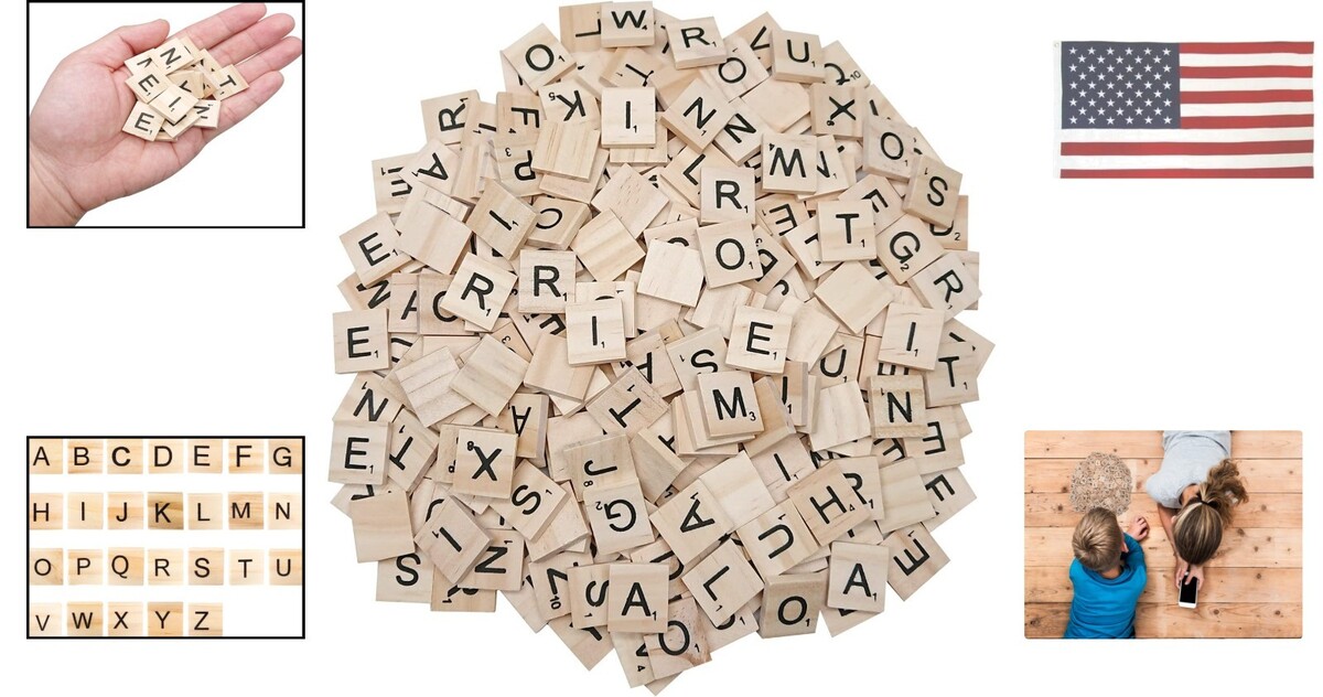 Phonics Wooden Letter Tiles, Spelling Reading Games Manipulative, 200 PCS Scrabble-Style Natural Wood