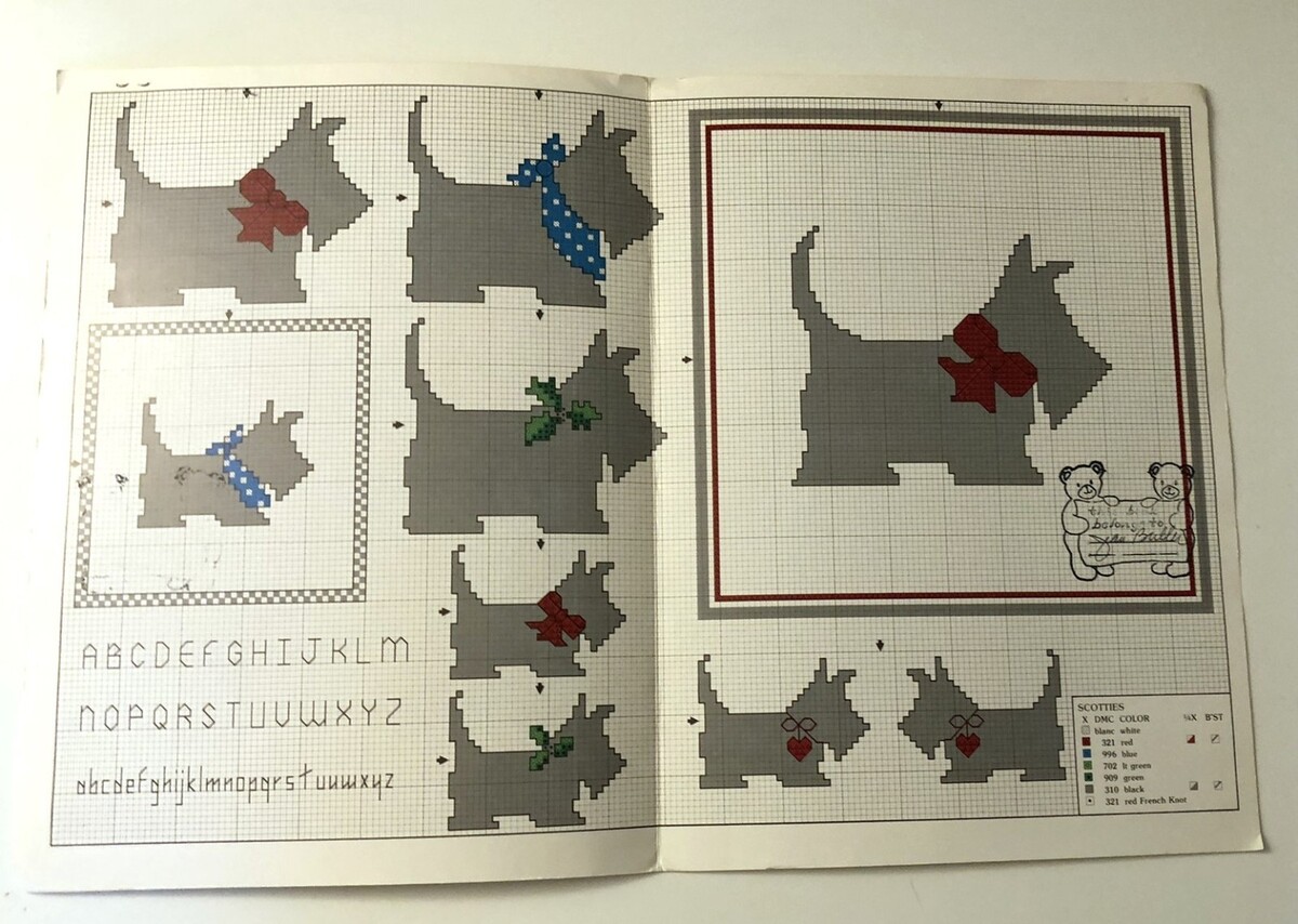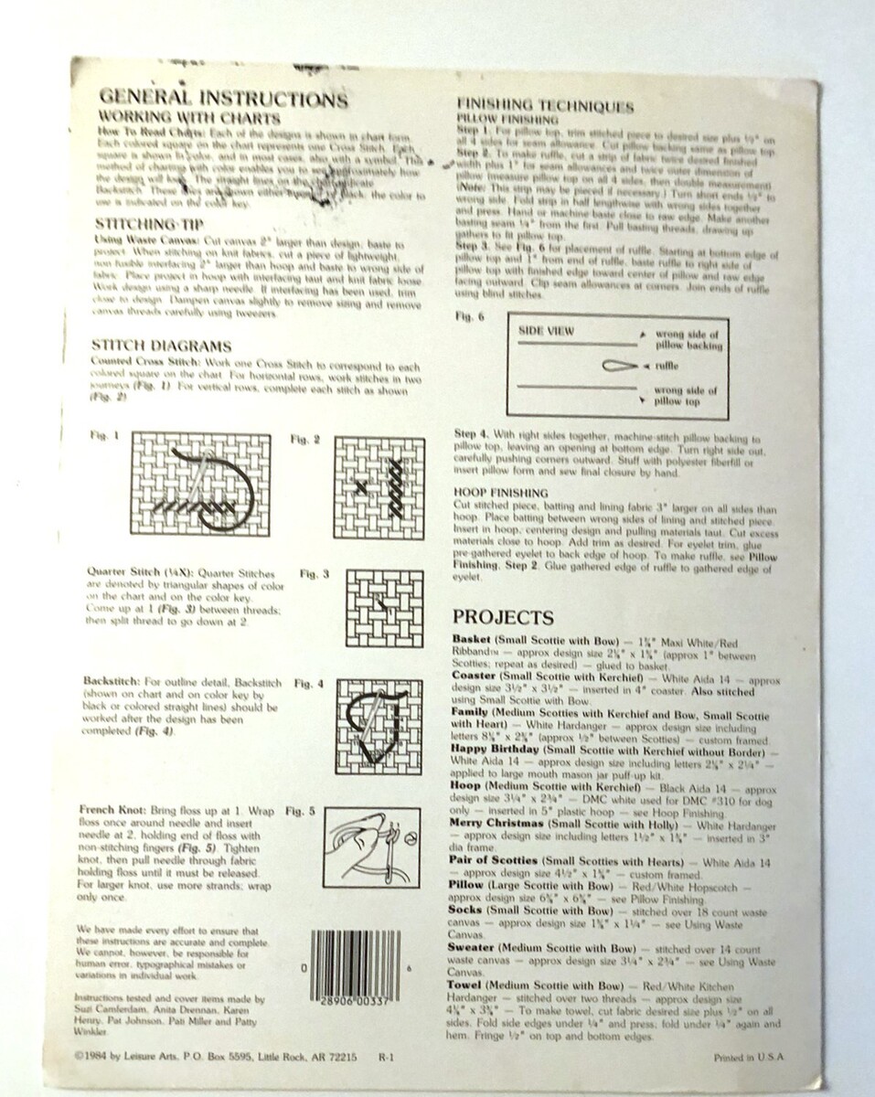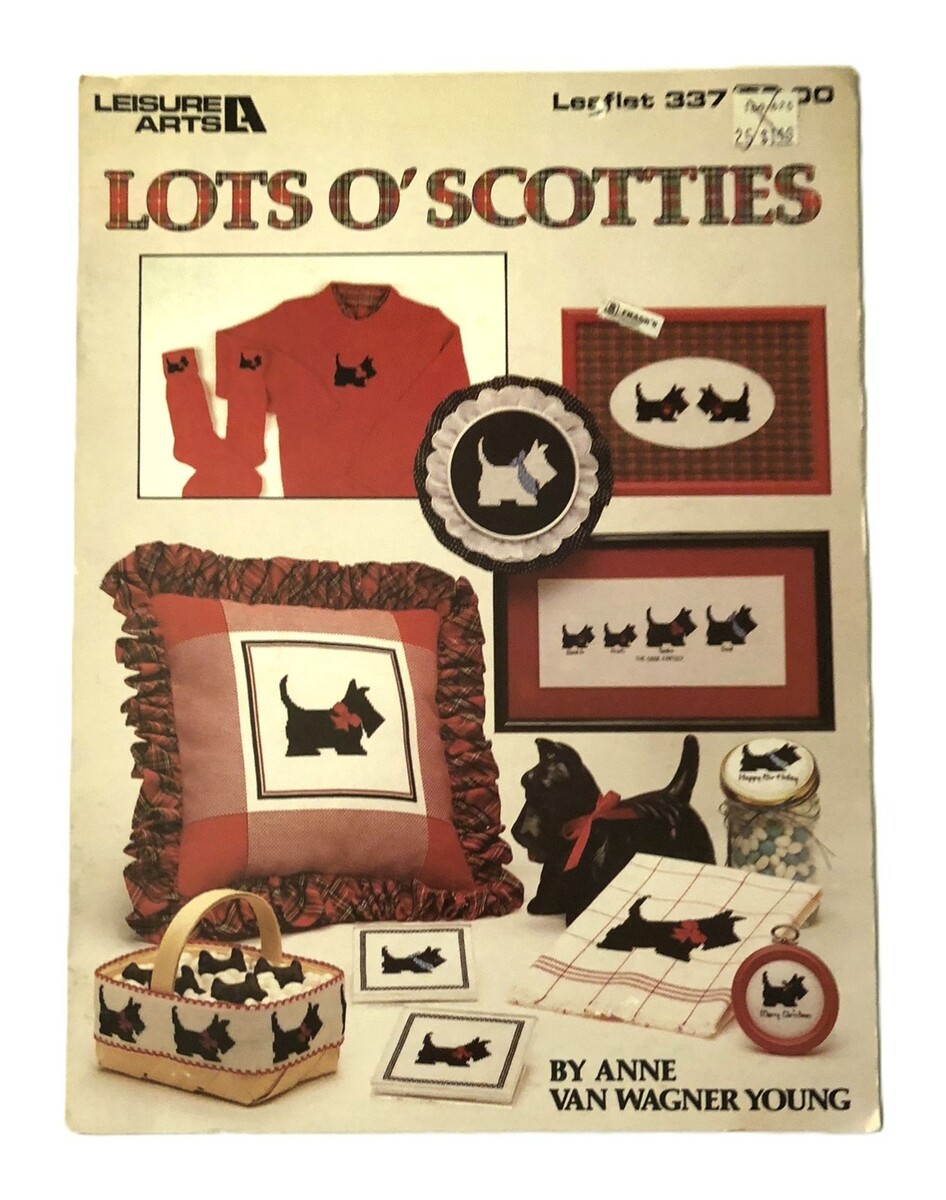 Leisure Arts Lots O' Scotties Dogs 337 Needlework 1984. The booklet/leaflet is in good clean, vintage condition. I do have other craft books at my shop and have calculated shipping set up for multiple purchases.