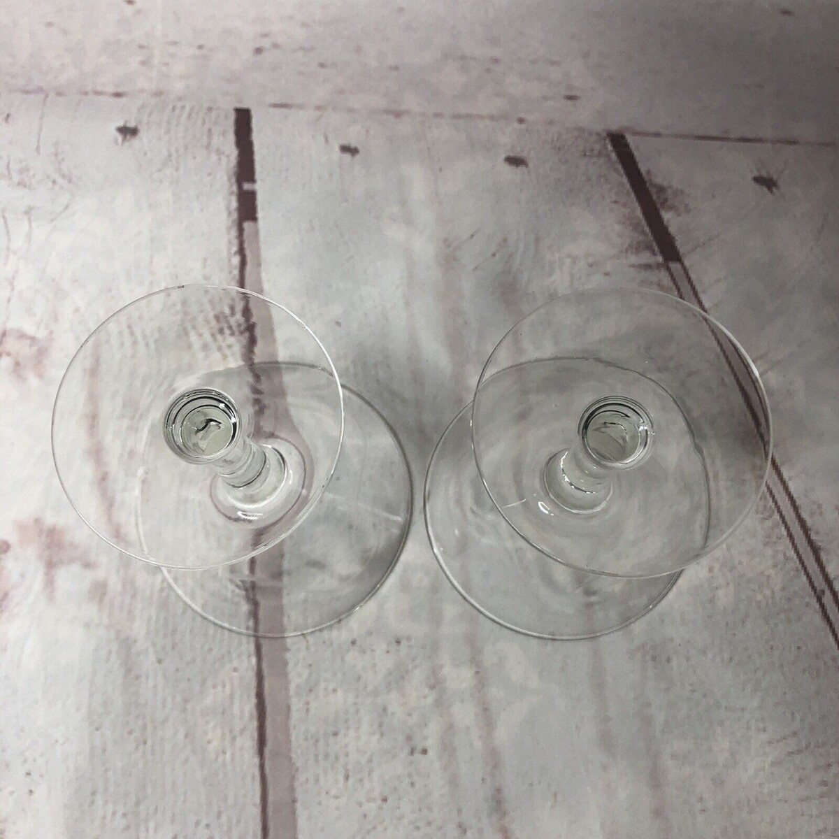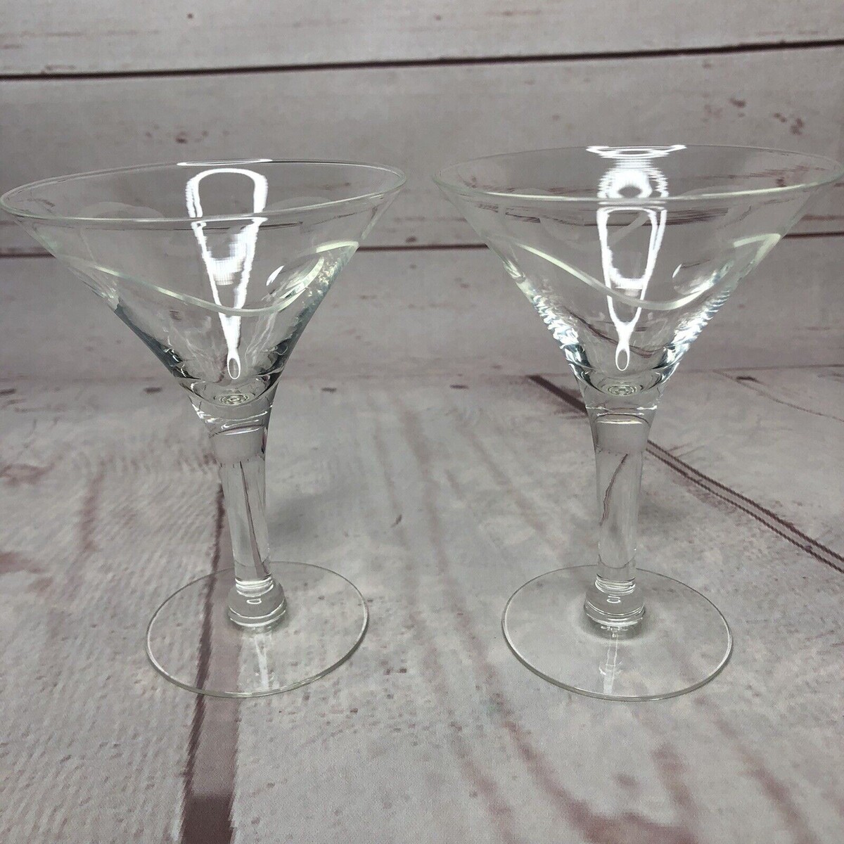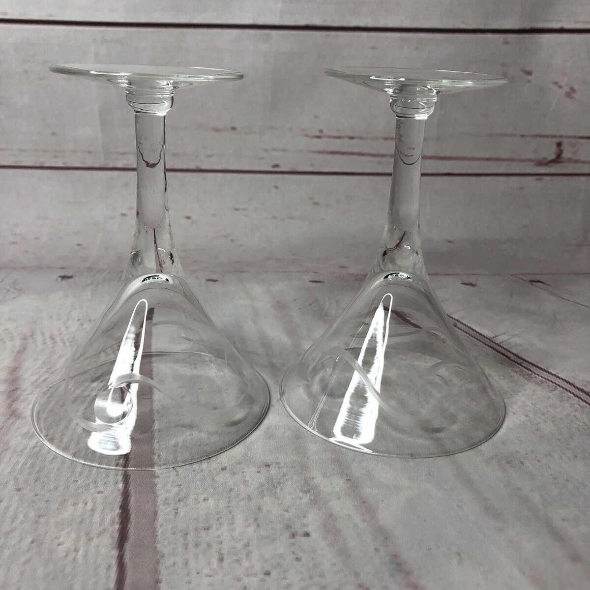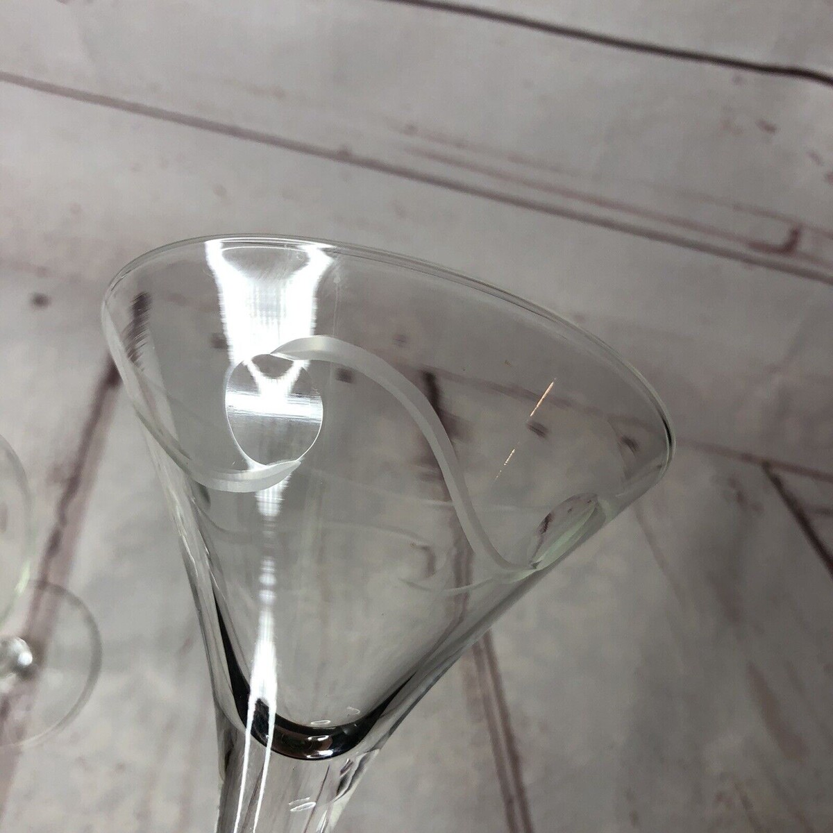 2 Etched Glass Martini Glasses Swirl Dot Dimples Cocktail Barware Stemware Pair
