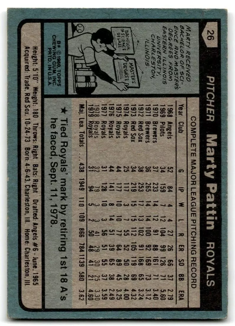 1980 Topps Marty Pattin . Kansas City Royals #26