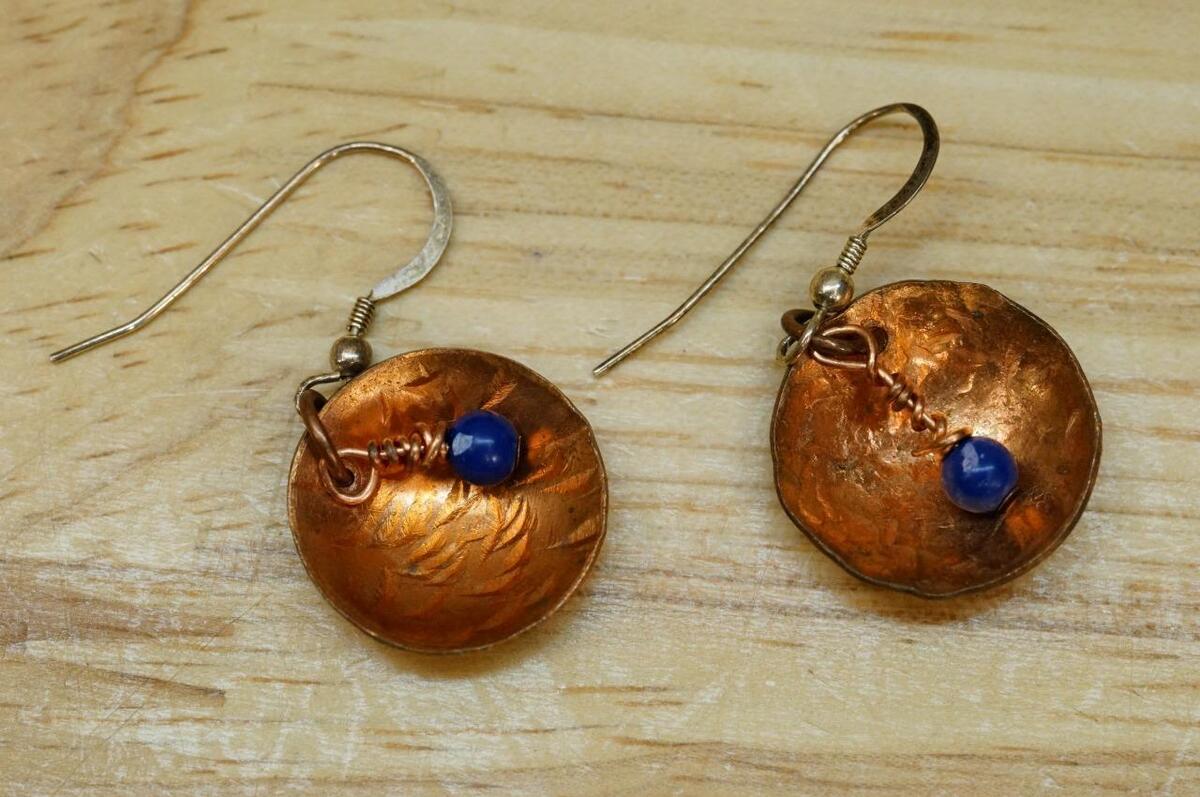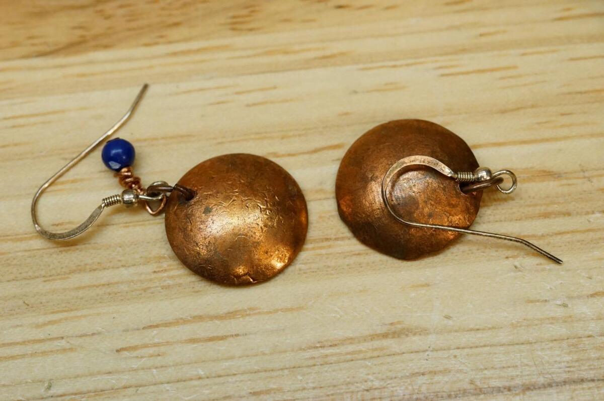 Frilli Jewelry Italy Lapis Onyx Bead Copper Wirework Filigree Bracelet Earrings. Bracelet is 7.5" long set with 9 lapis beads and one black onyx bead. Toggle clasp. The earrings are pierced in style, accented with a lapis bead, copper body and sterling silver ear wires. 3/4" across the hand hamered dome disc pendant. No smoke or pet odor.