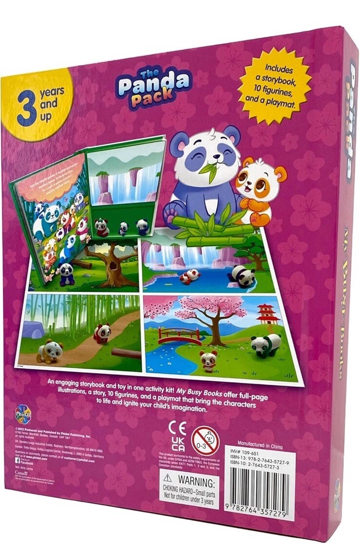The Phidal The Panda My Busy Books set includes a storybook, 10 figurines, and a playmat, all themed around the lovable character Phidal the Panda. The book is part of the My Busy Books series by Phidal Publishing Inc. and is written in English. The set is released in the year 2023 and provides an interactive and engaging experience for children to enjoy the story and play with the figurines on the playmat.
