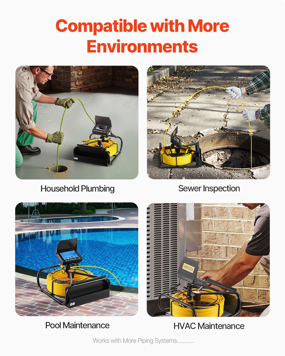 Broad Scope of Application: It is intended for people like plumbers, contractors, inspectors, engineers, municipal workers, and other professionals to inspect the areas usually hard to reach, such as wastewater systems, stormwater systems, pipelines of different kinds, drains, ducts, etc.