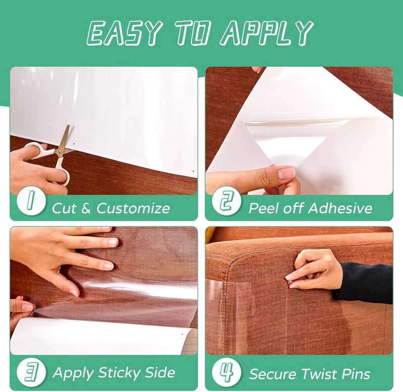 Ultra-Large Functional Furniture Protection: Couch protector from cat claws set includes 8 Large (17" x 12") +4 medium (17" x 6") cat scratch guards for furniture + 60 twist pins for securing couch protector for cats.Attach the anti scratch furniture protector securely to your couch with the included twist pins for extra protection from cat scratches and play.