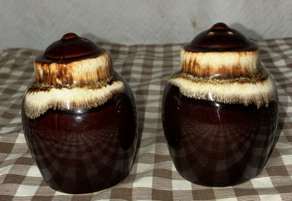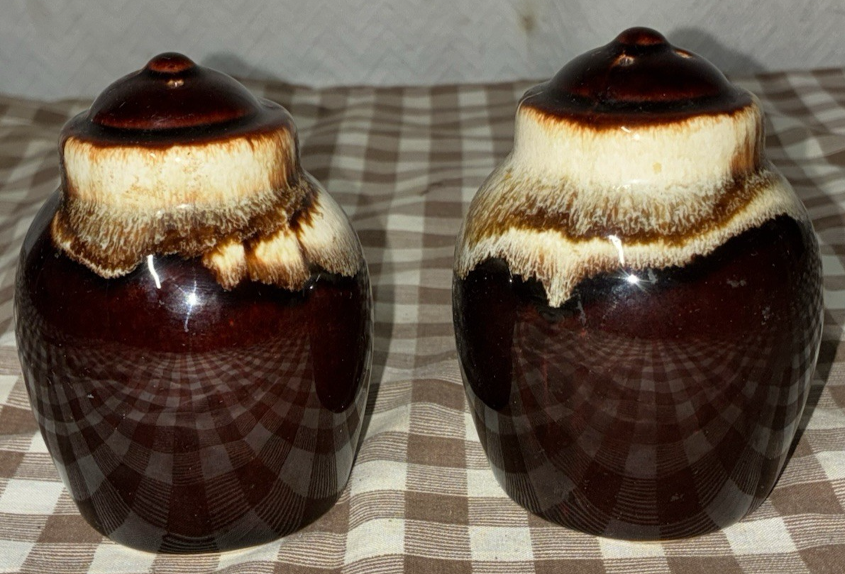 Vintage Pfaltzgraff Brown Drip-ware Stoneware Salt and Pepper Shakers
