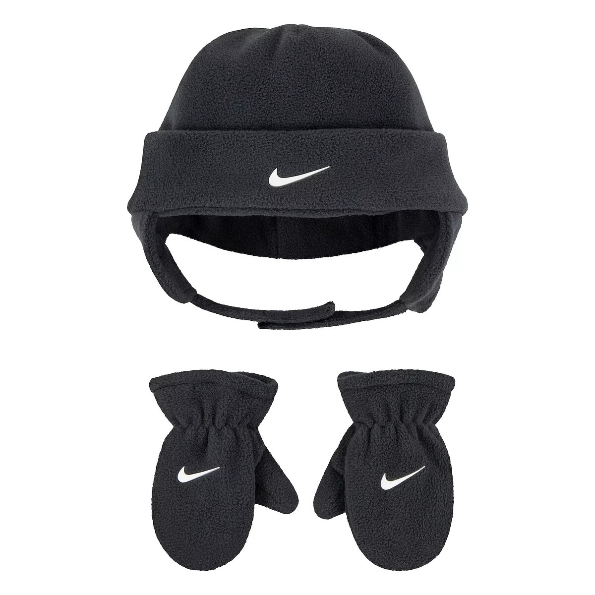 Nike Baby Boys Toddler 2 Piece Hat Mittens Set New Fleece Chin Trapper Cap