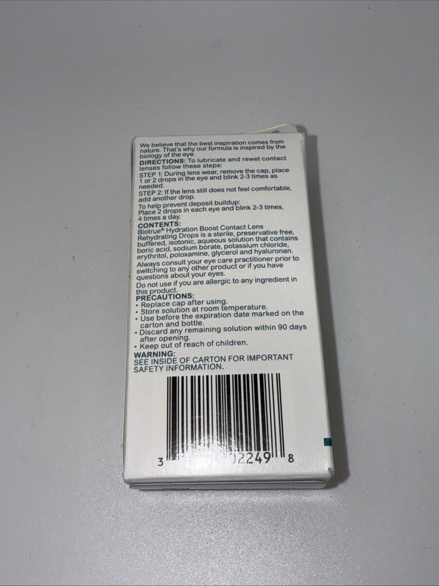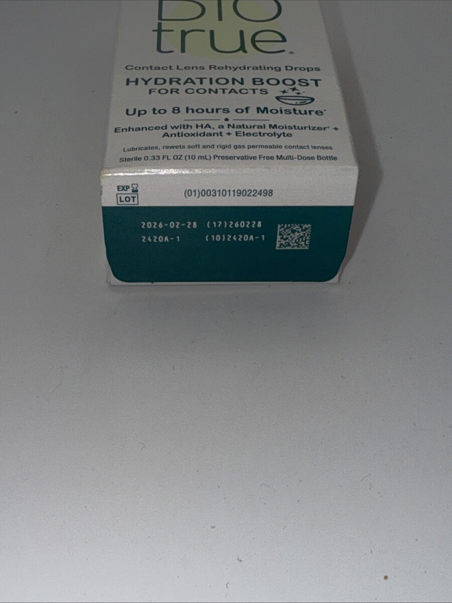 Bausch+Lomb Bio True Hydration Boost For Contacts - Exp 02/26. Package may contain shelf ware, retail stickers, or cosmetic imperfections.