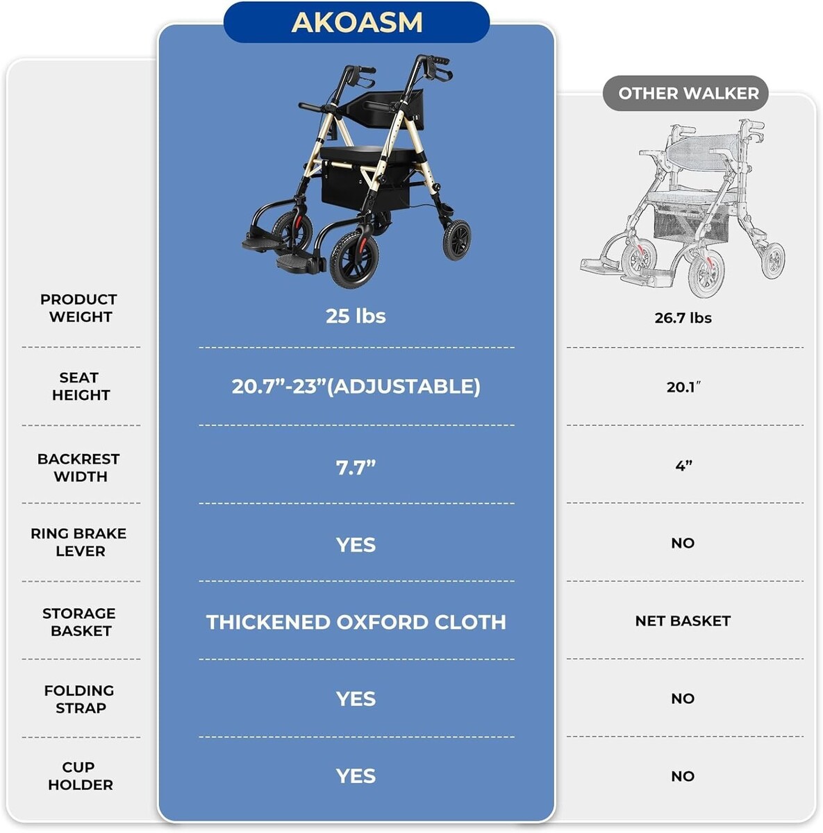 Akoasm Foldable Rollator Walker for Seniors and 15 similar items
