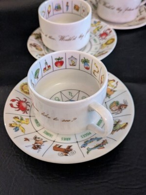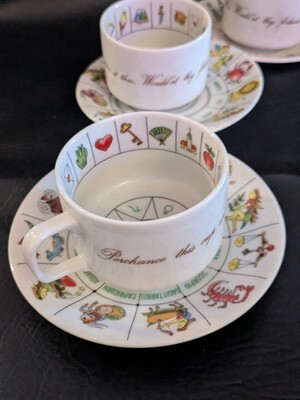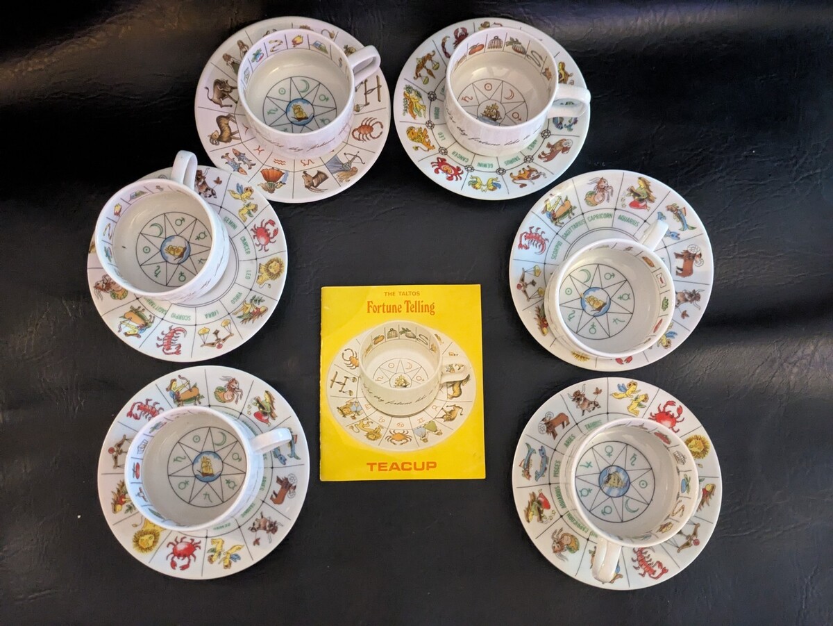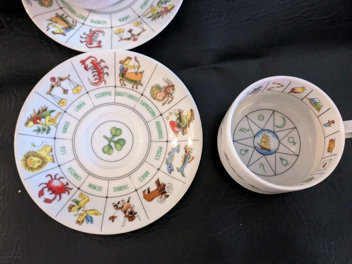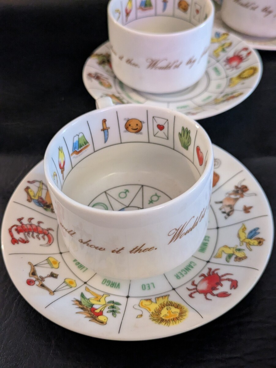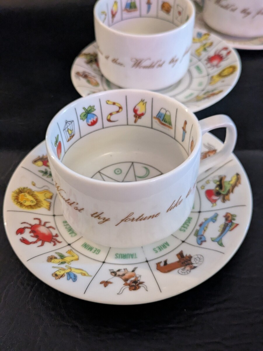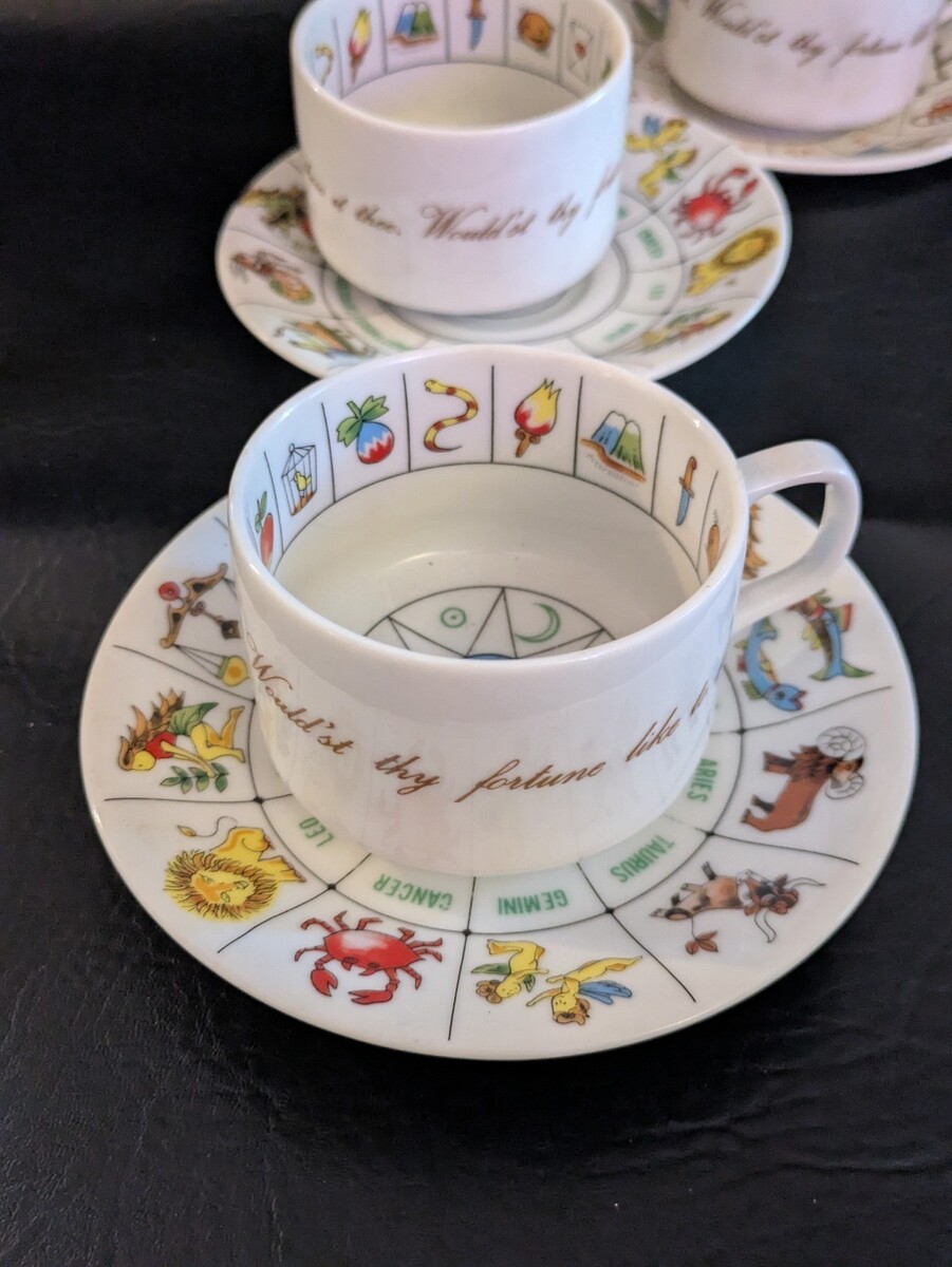 Set of 6 Shamrock Heart Horoscope Tea Reading Fortune Teller Cup Saucer