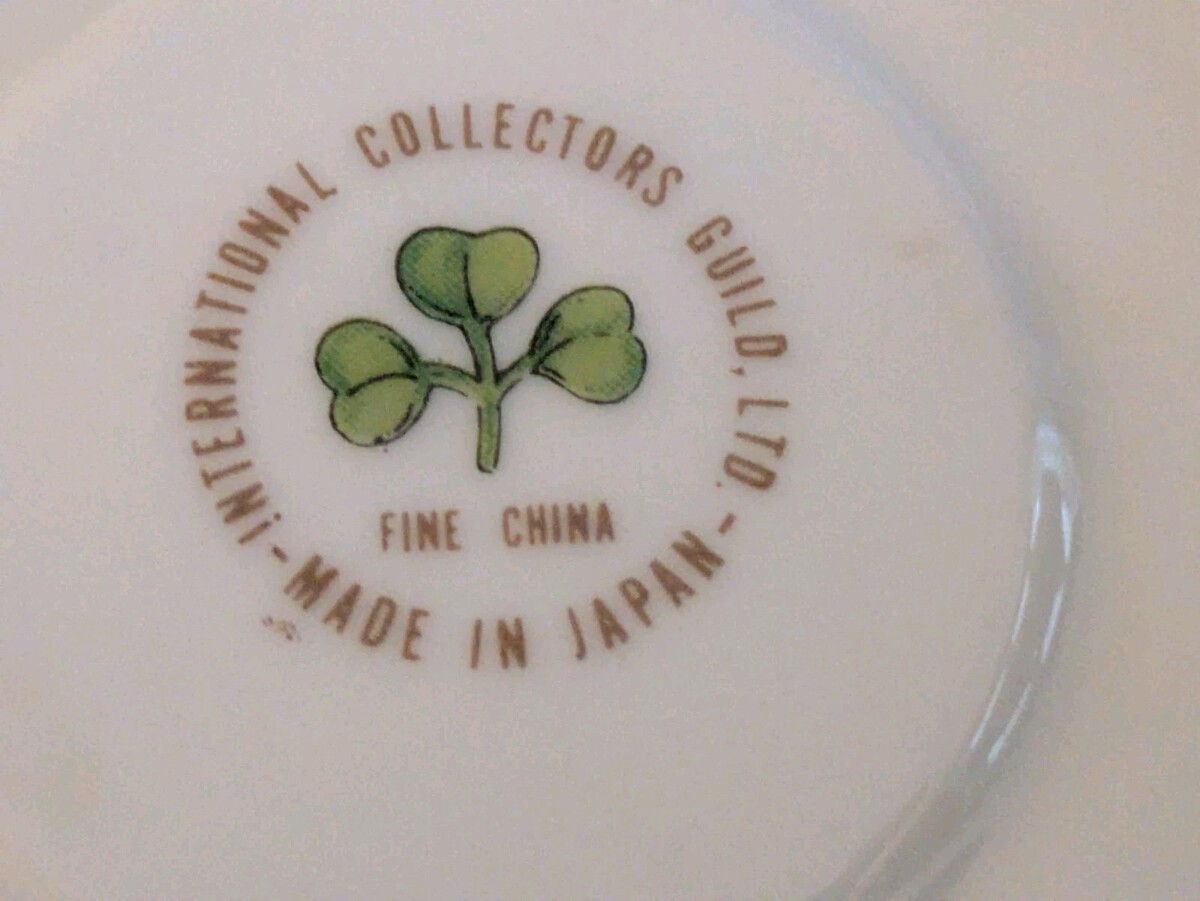 The Set of 6 Shamrock Heart Horoscope Tea Reading Fortune Teller Cup Saucer by International Collectors Guild features a mystical theme with a fortune teller pattern. Made of white porcelain and originating from Japan, these vintage tea cups and saucers have a 3-inch diameter and weigh 9 oz each. Perfect for adding a touch of magic to your afternoon tea time, these unique cups are sure to enhance your kitchen and home decor with their charming design.