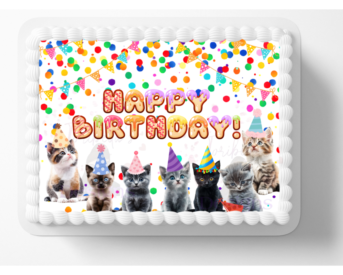Cat Lover Happy Birthday Pet Kitten Themed Edible Image Cake Topper -02y