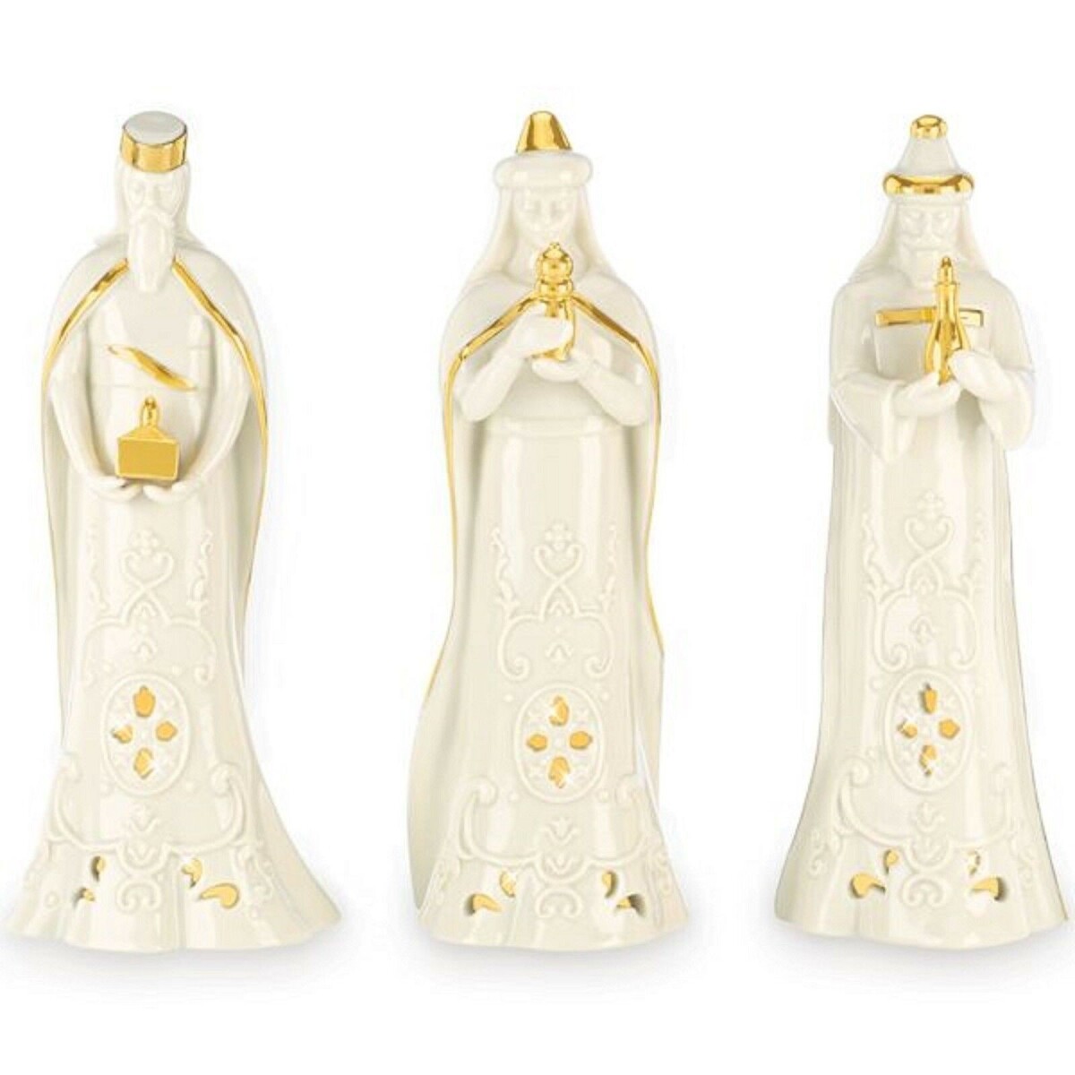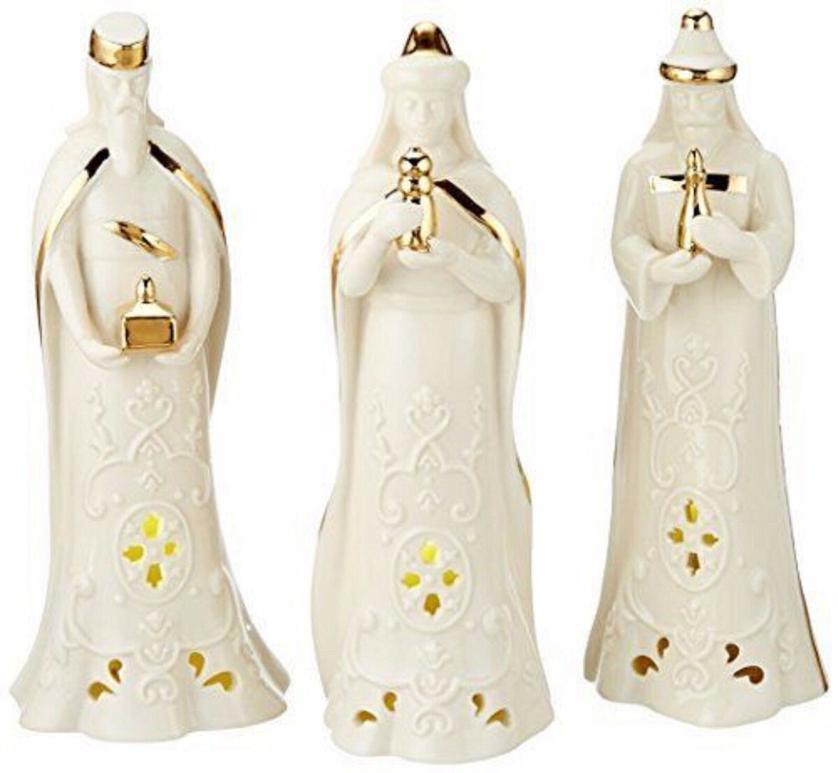 Lenox Divine Lighted Three Kings Figurines Pierced Nativity 3 Wise Men Ivory NEW