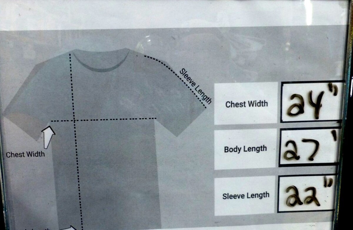 No visible flaws. Measurements: chest width = 24", body length = 27", sleeve length = 22".