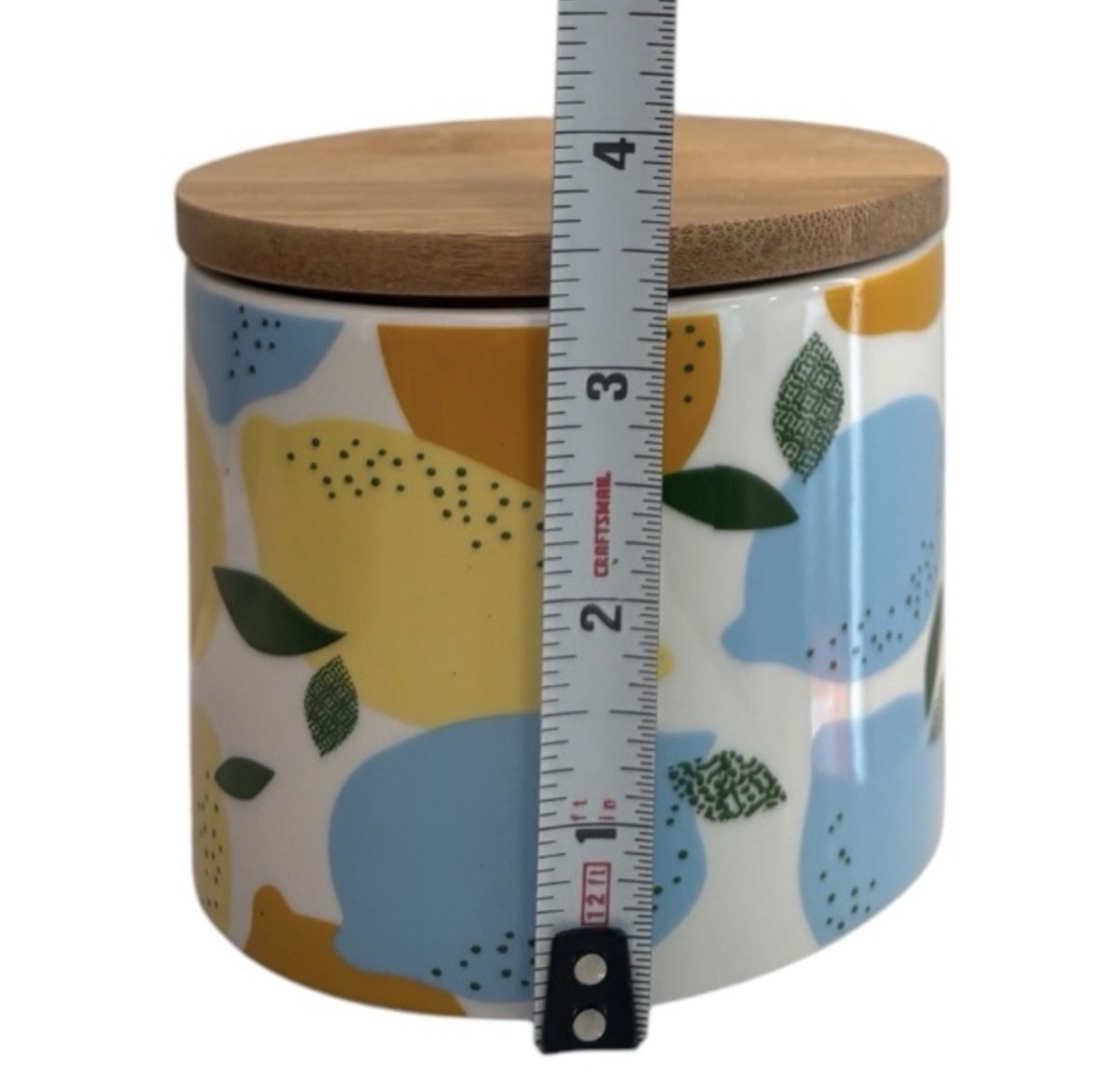 Lemons Lemon Canister Blue Yellow Orange w/ Bamboo Lid Ceramic Kitchen