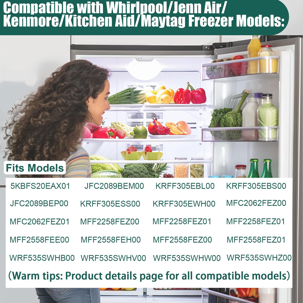 Our refrigerator door gasket is designed to fit a wide range of models, including but not limited to JFC2089BEM00, KRFF305EBL00, KRFF305EBS00, WRF535SWHB00, WRF535SWHV00, WRF535SWHZ00, JFC2089BEP00, KRFF305ESS00, MFC2062FEZ00, MFF2258FEZ00, MFF2558FEZ00, WRF540CWHZ00, WRF535SMHZ00, WRF532SMHZ00, WRF532SMHV00, WRF532SNHZ00, WRF535SMHB00, and more. See the full compatibility list below .