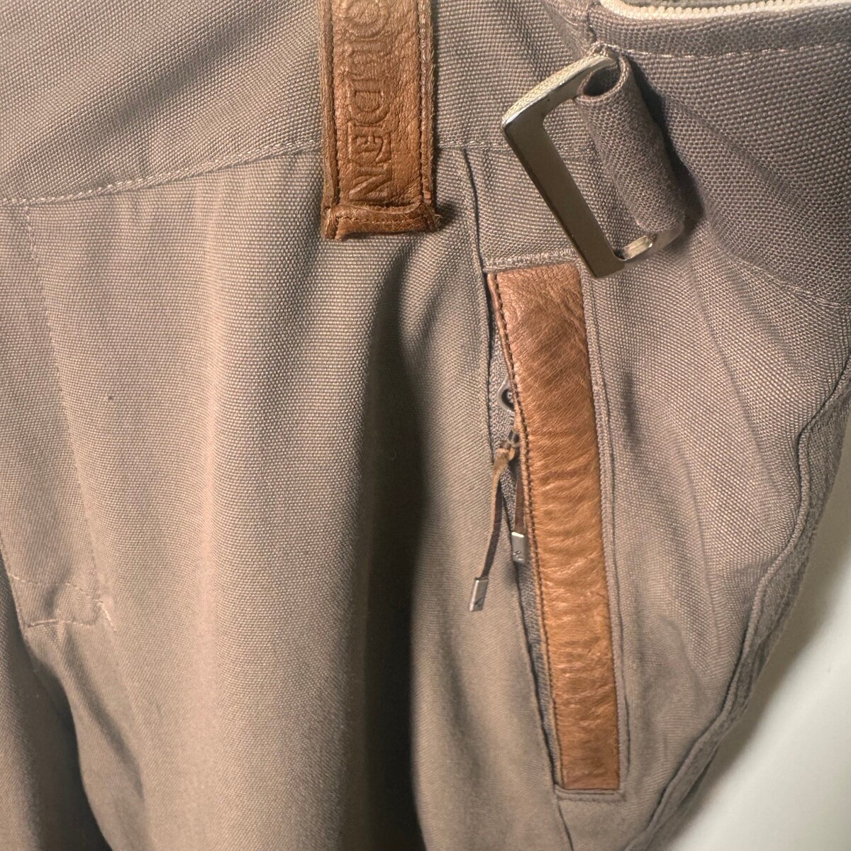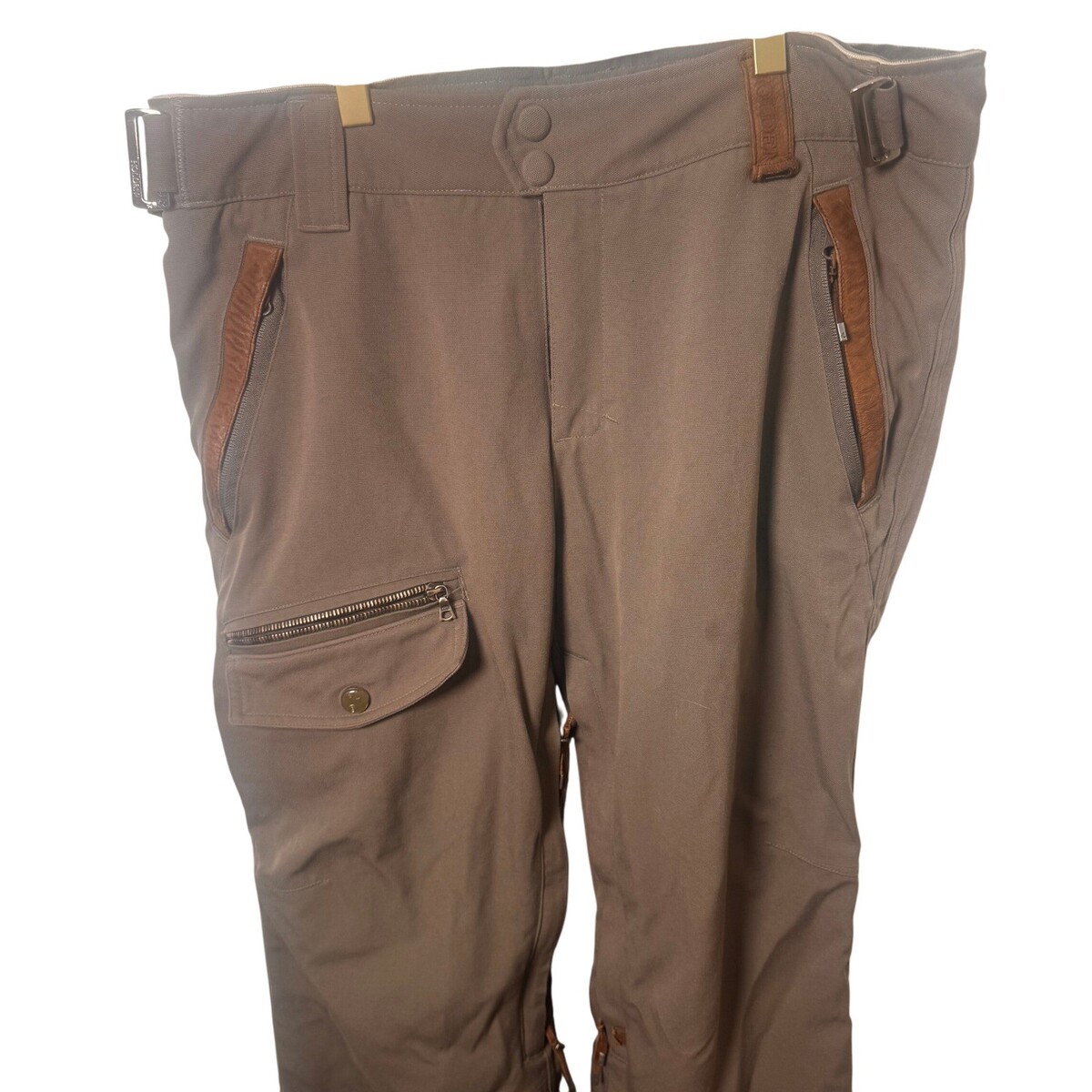 Keywords: ski pants, snow pants, Holden, womens ski pants, insulated pants, winter pants, snowboard pants, outdoor apparel, leather trim, brown pants, size L, snow gear, ski apparel, weatherproof pants, cold weather