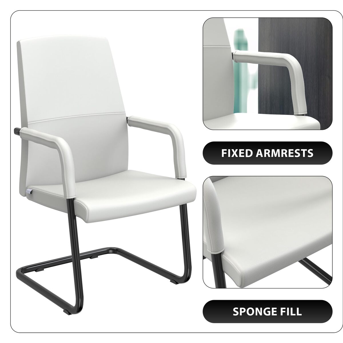 The Office Chair's padded and modern design ensures a comfortable and supportive seating experience, making long hours at the desk more enjoyable. Supported by a robust aluminum frame. Aluminum's strength and lightweight nature make it an ideal choice for office furniture that can withstand the demands of daily use. Enjoy the luxurious feel of faux leather, covering the seat, arms and the back of the office chair. It also offers easy maintenance and cleaning. The sponge fill strikes the perfect balance, offering support during long hours of work without compromising on comfort. The Office chair has fixed armrests that contribute to a more ergonomic seating experience, reducing strain during extended periods of desk work. Keep the office chair looking pristine with easy maintenance. Simply clean with mild soap and water for a hassle-free and effective cleaning solution. Clear and detailed instructions are included to guide you through the assembly process. All the required hardware is provided, making sure your assembly experience is simple and fulfilling.