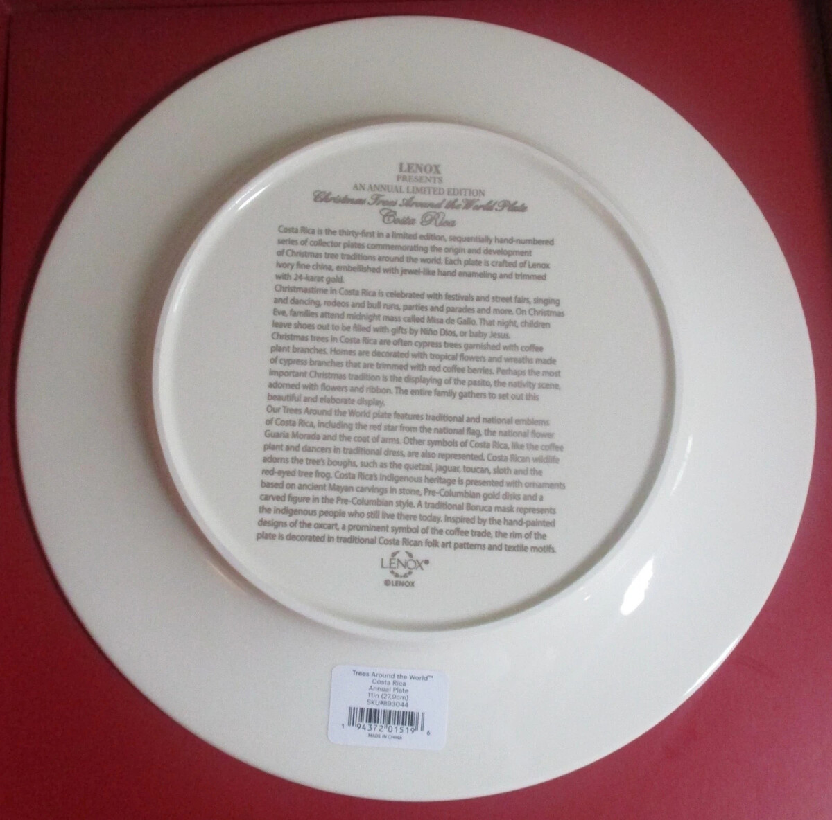 Lenox 2021 Costa Rica Collectors Plate Trees Around The World Christmas LE NEW