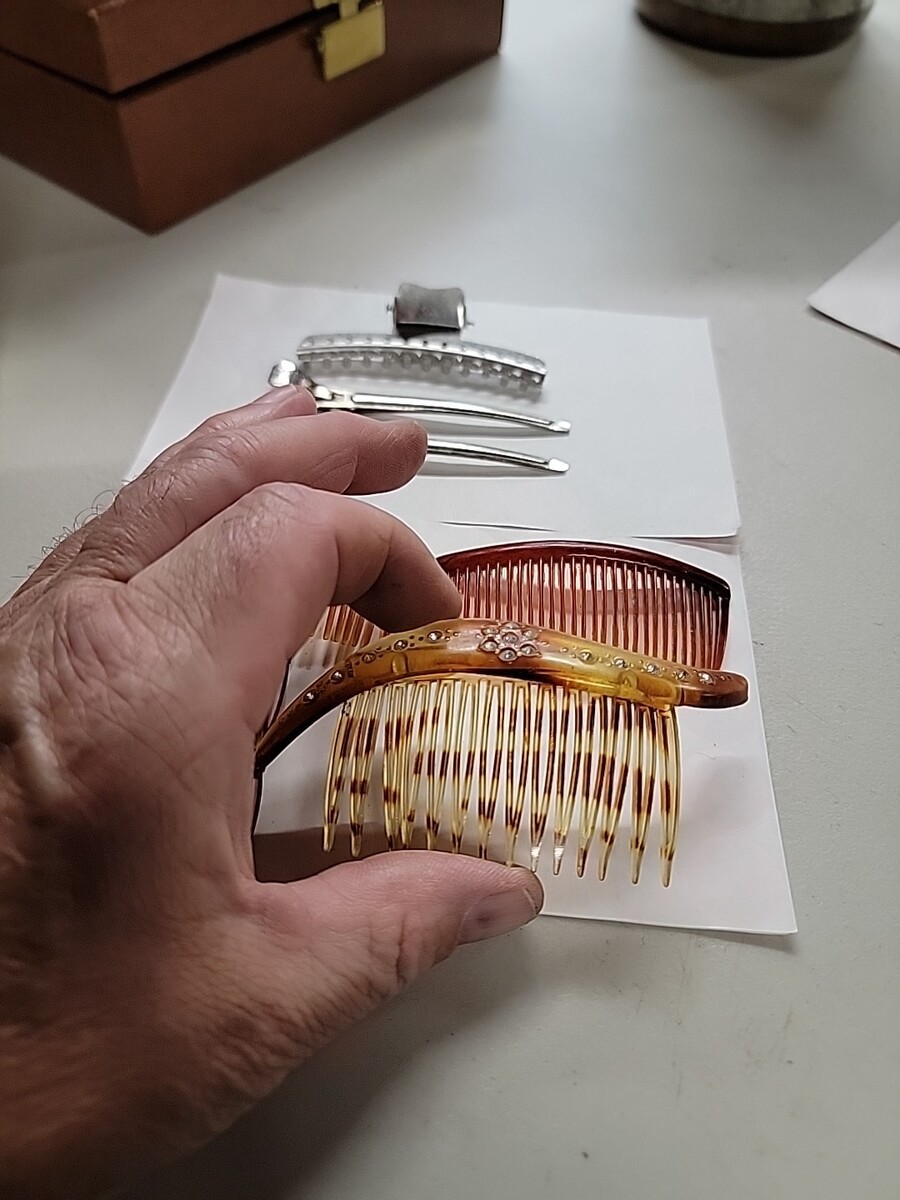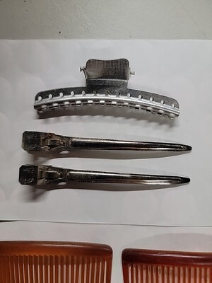 This lot of 8 vintage hair clips features a variety of colors and an Art Deco look, perfect for a casual occasion. Made of different materials, these original accessories are designed for women and add a unique touch to any outfit. Perfect for adding a touch of vintage flair to your hairstyle, these multi-color clips are a stylish addition to any wardrobe.