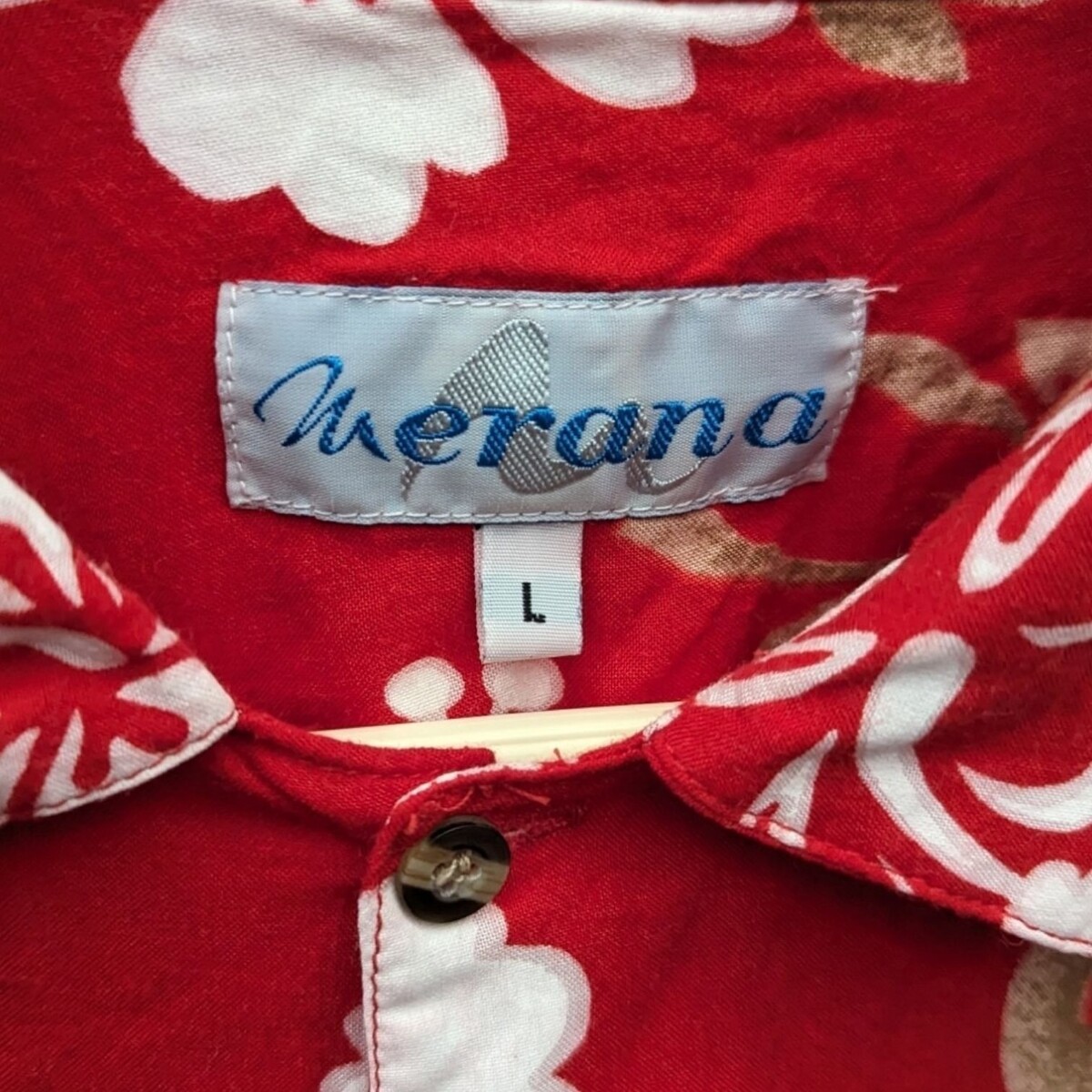 Vintage Merana Mens Red Floral Hibiscus Button Down Hawaiian Shirt Large L