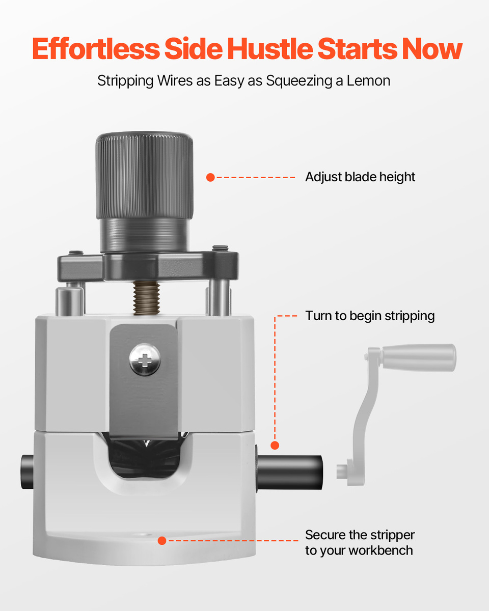 Compact Portable: Roughly the size of a can of soda and weighing only 1.19 lbs, this manual wire stripper machine is designed for easy one-handed operation and portability. Ideal for carrying with you wherever you go to boost your side income