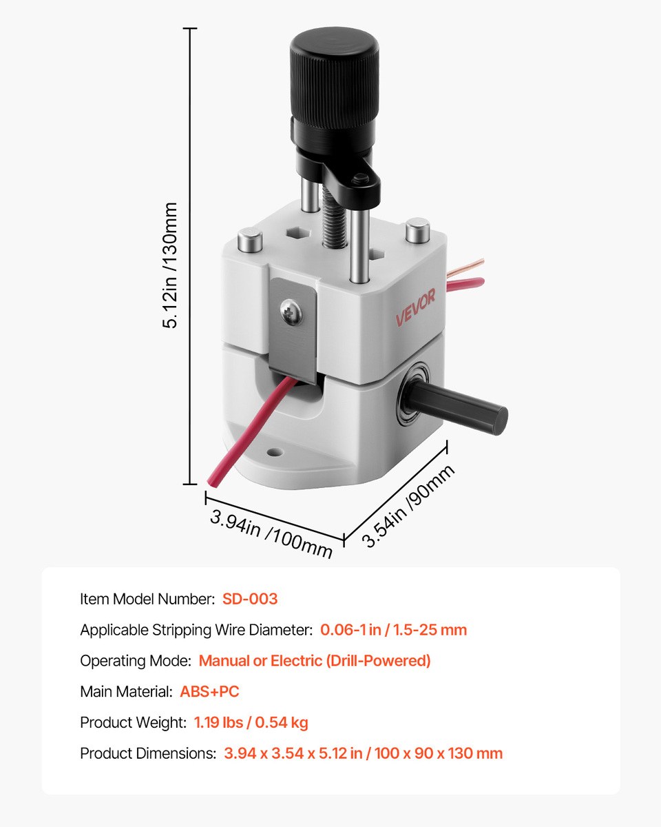 Handles All Wire Types: Capable of processing cables with diameters ranging from 0.06 inch to 1 inch, this wire stripper machine is fit for stripping hard-cover wires, soft-cover wires, multi-strand cables, single-core wires, and more