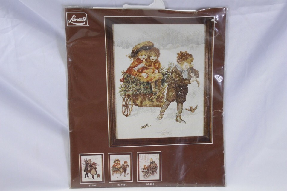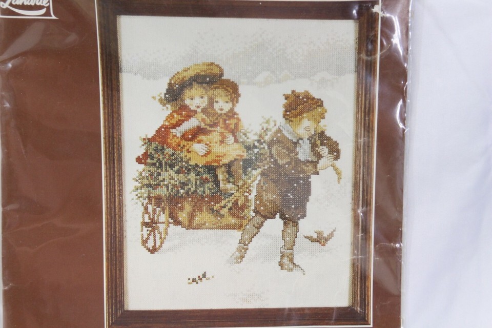 Lanarte Holland Cross Stitch 33465 Boy Pulling Girls in Cart 8-1/2 x 11"