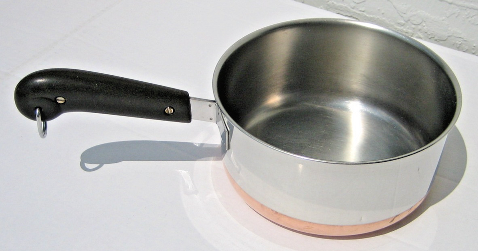 copper-clad bottom 2 qt. sauce pan The logo