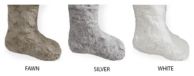 Evoke the whimsy of the holidays with Stivali, an ultra-soft faux fur stocking with contrasting cuff.