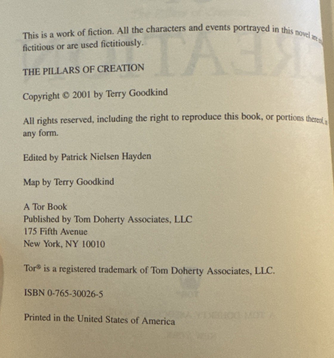 PILLARS OF CREATION Terry Goodkind HARDCOVER 2001