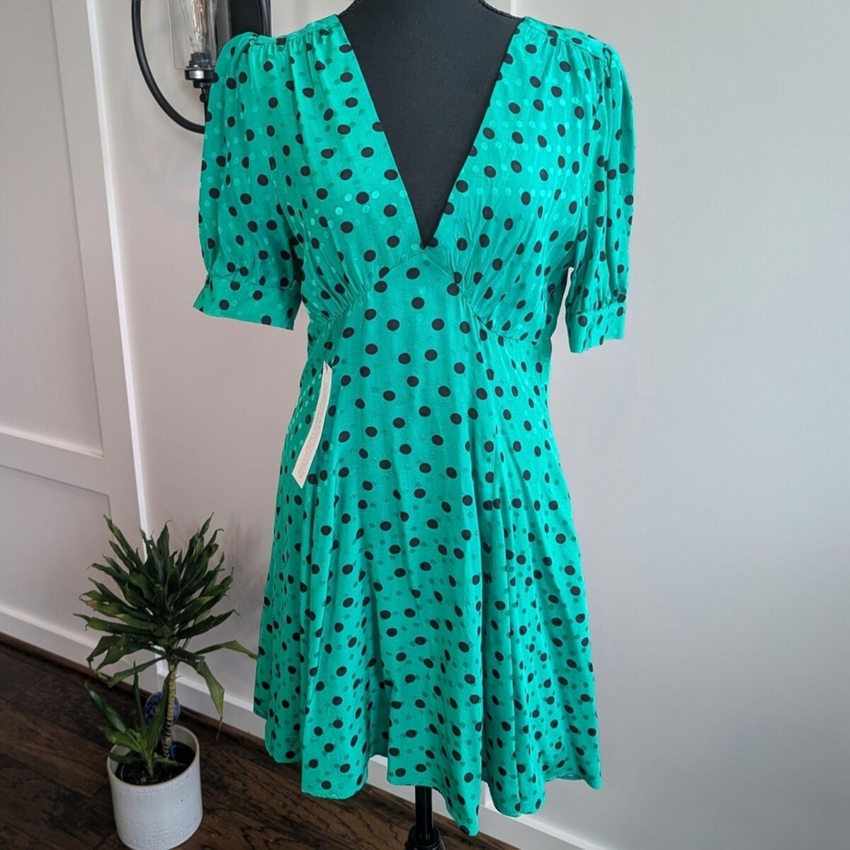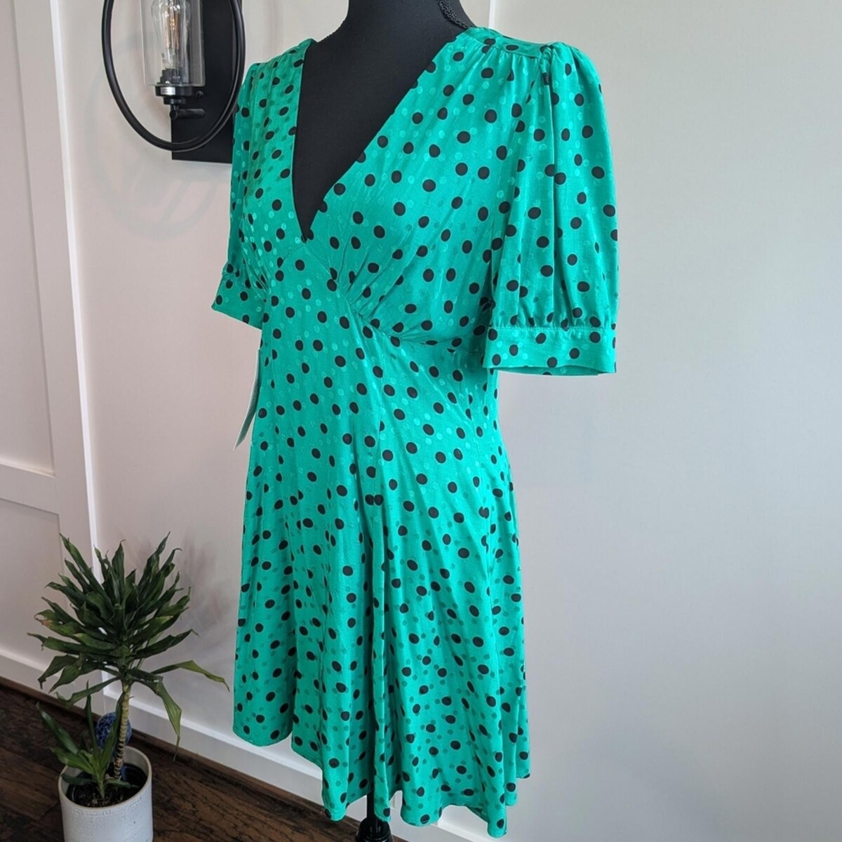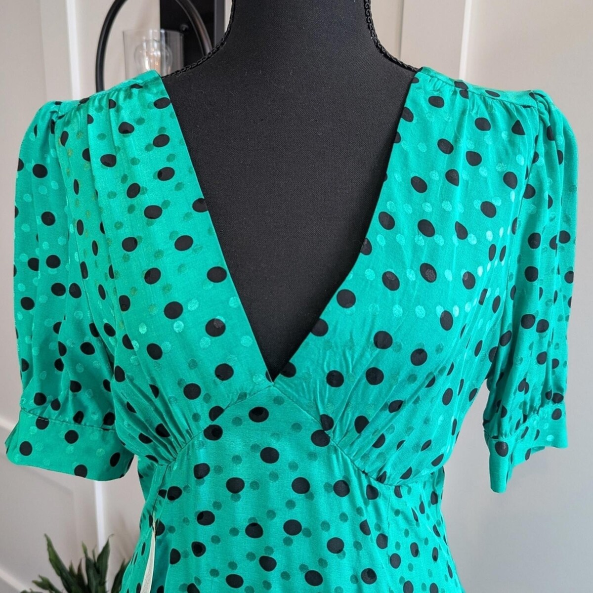 Topshop Green Black Polka Dot Puff Sleeve and 10 similar items