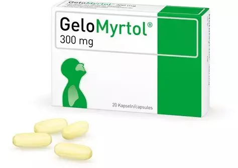 GeloMyrtol forte affects the secretion and cough of respiratory diseases, liquefies the thickened secretion, enhances its secretion, facilitates expectoration and has an anti-inflammatory effect.