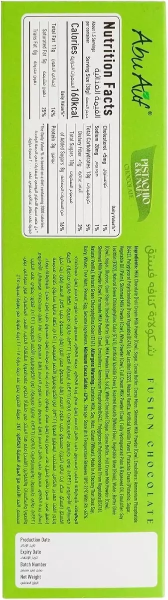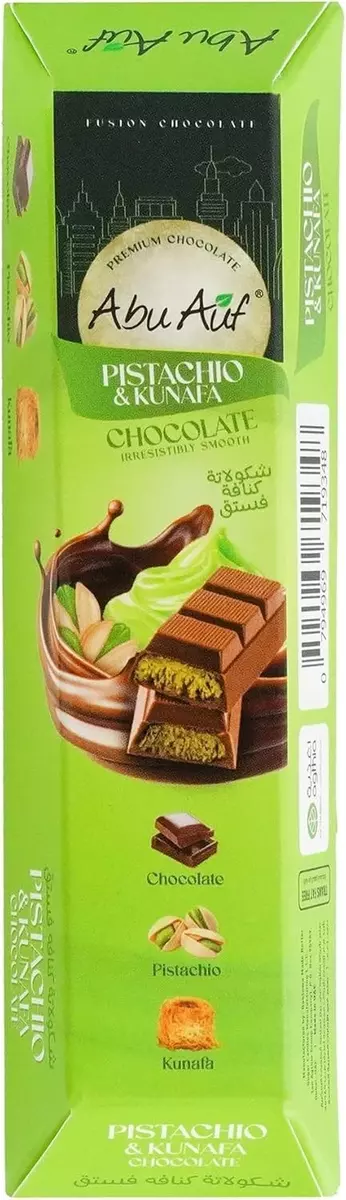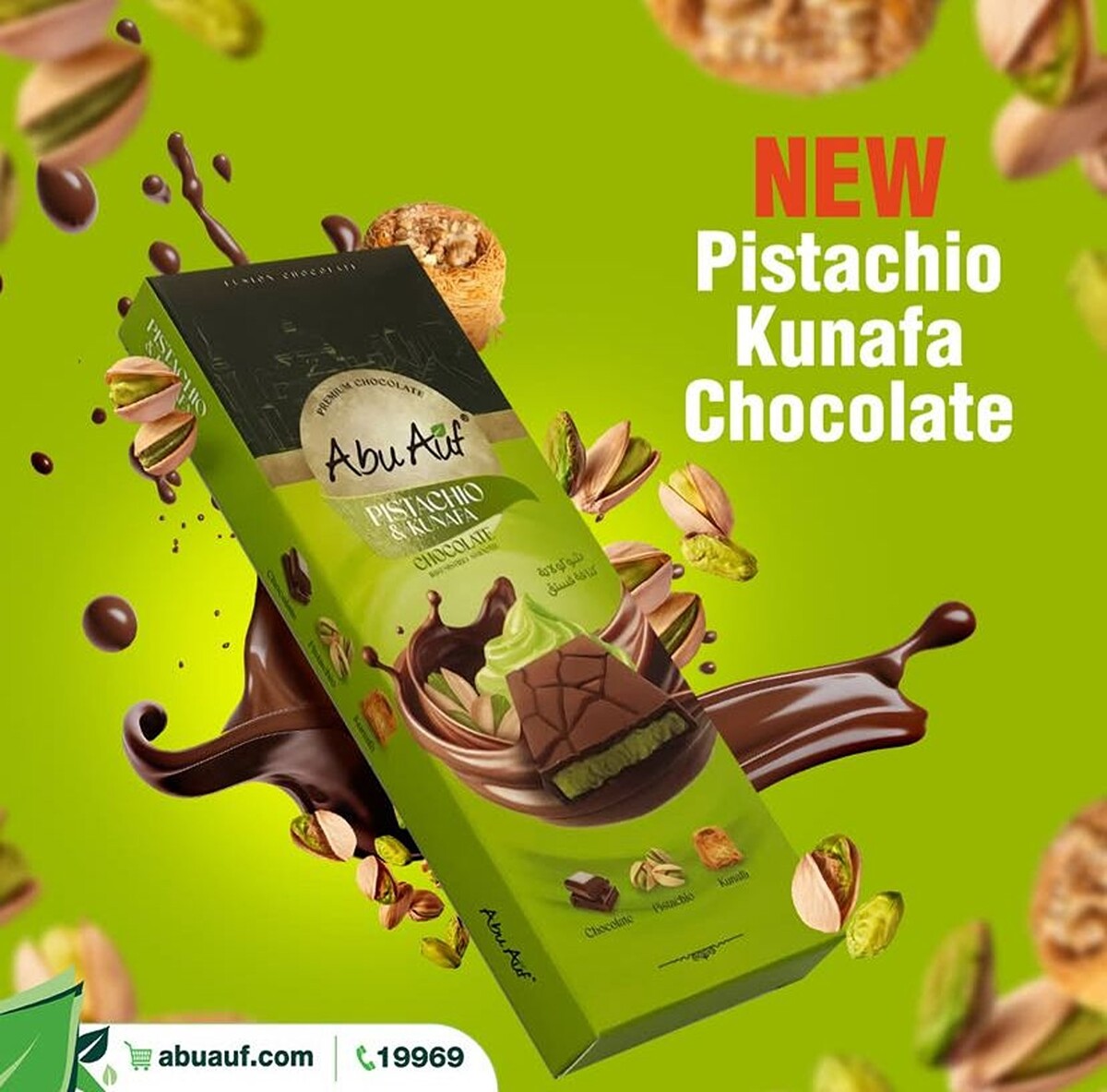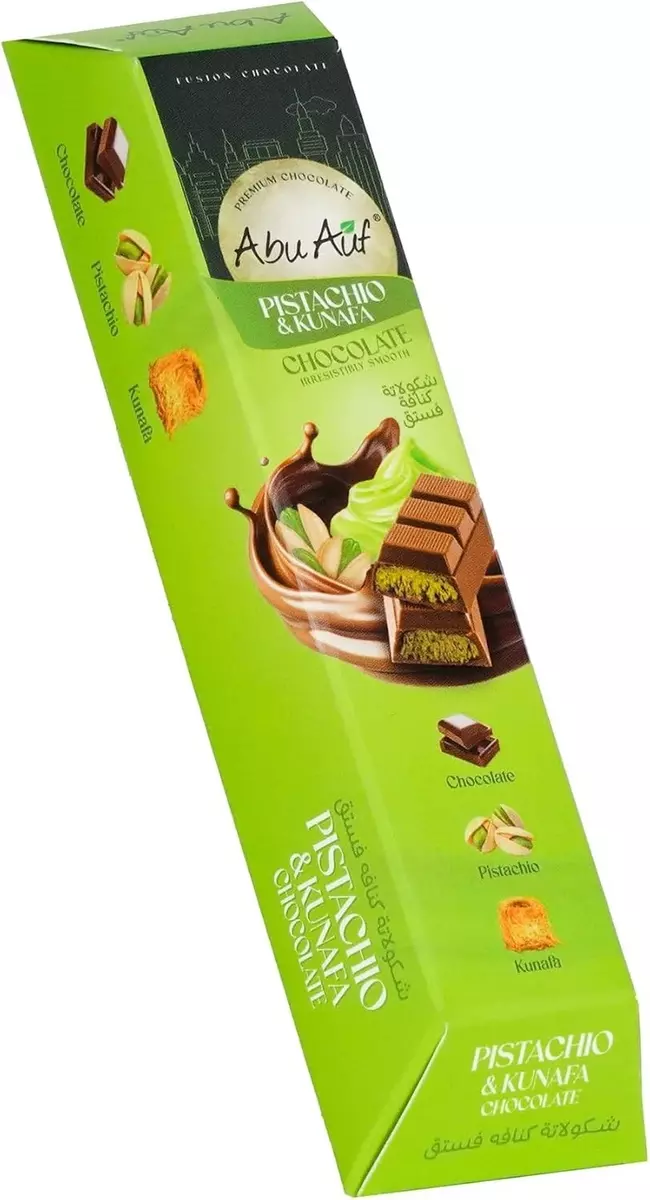 Abu Auf Milk Chocolate Pistachio & Kunafa Dubai viral Chocolate Bar 130gm Each"