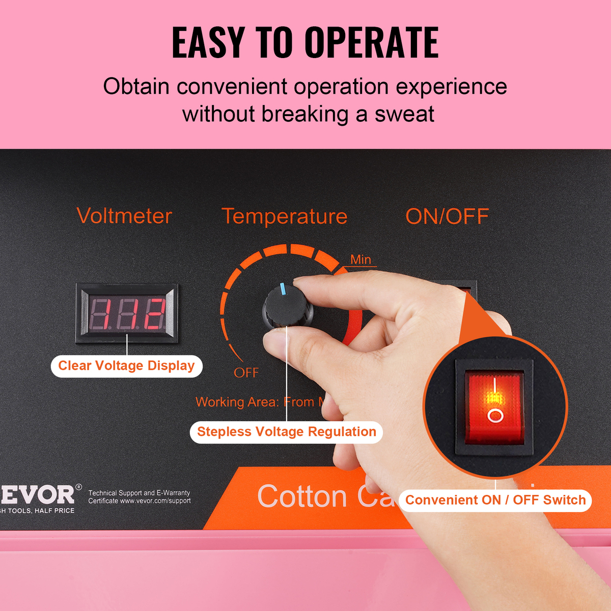 VEVOR Electric Cotton Candy Machine, 1000W Commercial Cotton Candy Machine(Pink)