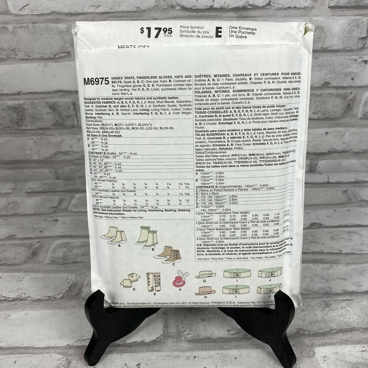 McCall’s M6975 Sewing Pattern Men’s & Ladies Hats Belts Spats Fingerless Gloves